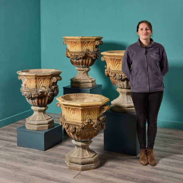 Rare Set of 4 Large English Antique Terracotta Garden Urns