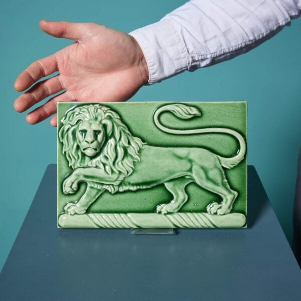Maw & Co Antique English Green Glazed Lion Tile Ex. Chris Blanchett Collection