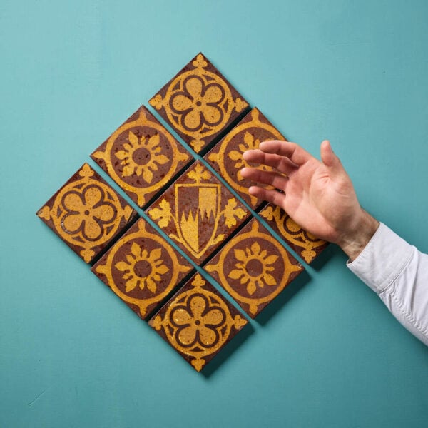 Set of 9 Godwin & Craven Dunhill Encaustic Tudor Revival Tiles