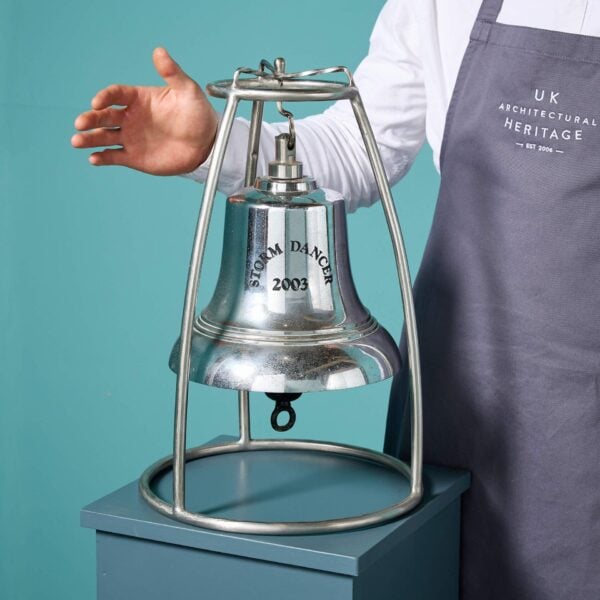 Reclaimed Chrome-Plated Bronze Maritime Bell on Stand
