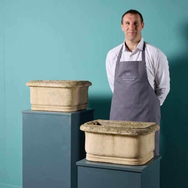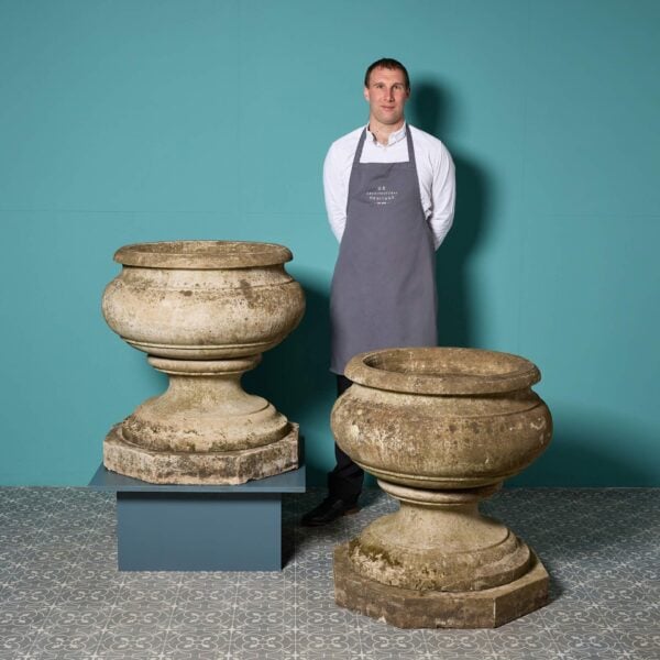 Set of Monumental 2.38m Tall Weathered English Neoclassical Style Garden Urns