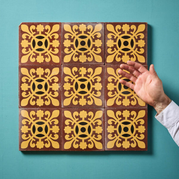 Set of 9 Reclaimed English Encaustic Patterned Tiles