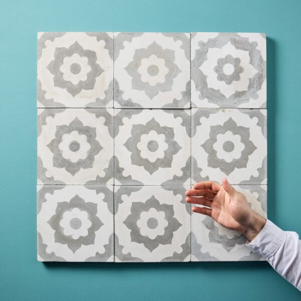Set of 9 Reclaimed Spanish Floral Encaustic Floor Tiles