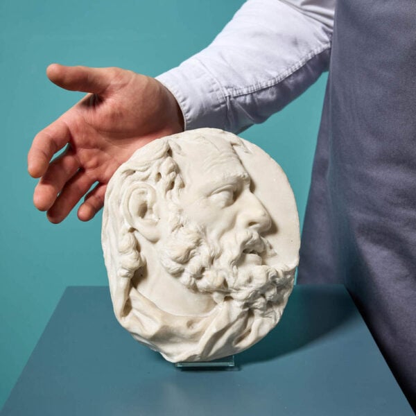 Antique Bronzed Terracotta Bust of Dante on Italian Marquina Marble Column