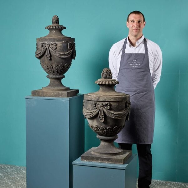 Two Carved Antique Adam Style Sandstone Garden Urns