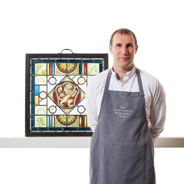 Antique Heraldic Rampant Lion Stained Glass Panel