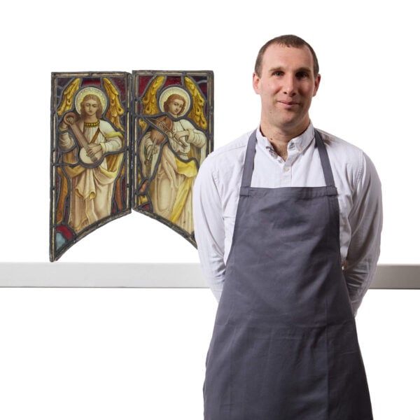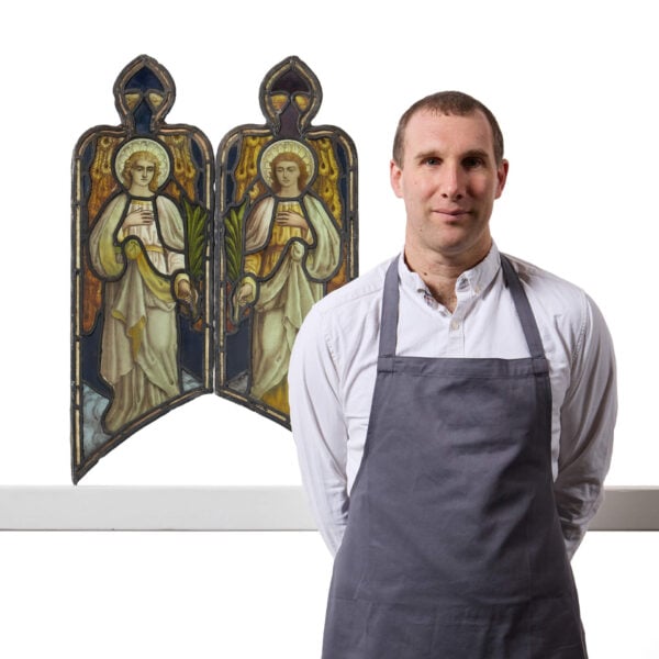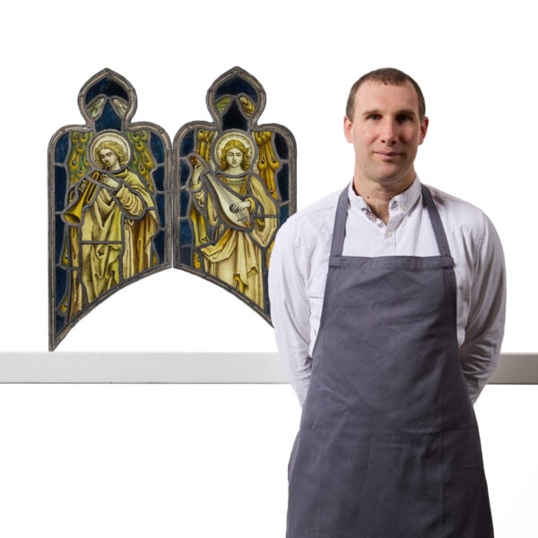 Two Antique Religious Stained Glass Windows Depicting Angels by Atkinson Bros