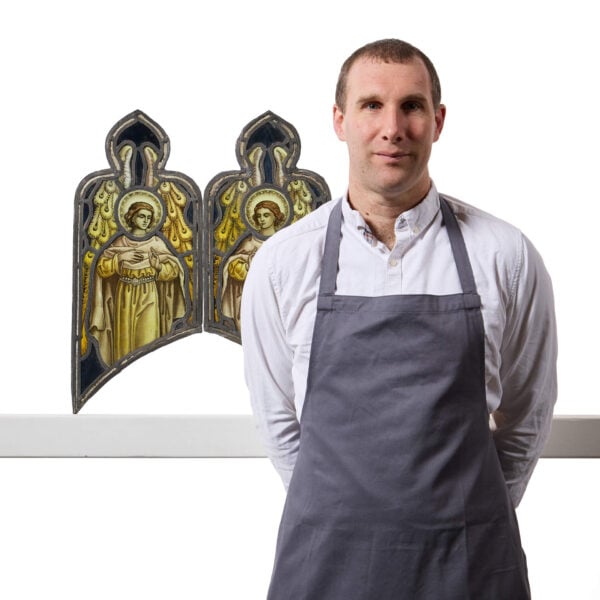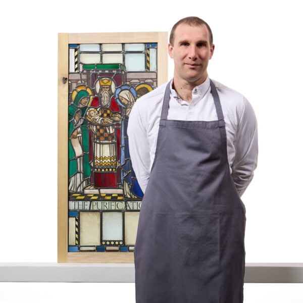 Antique Stained Glass Depiction of The Purification of Mary and the Presentation of Our Lord