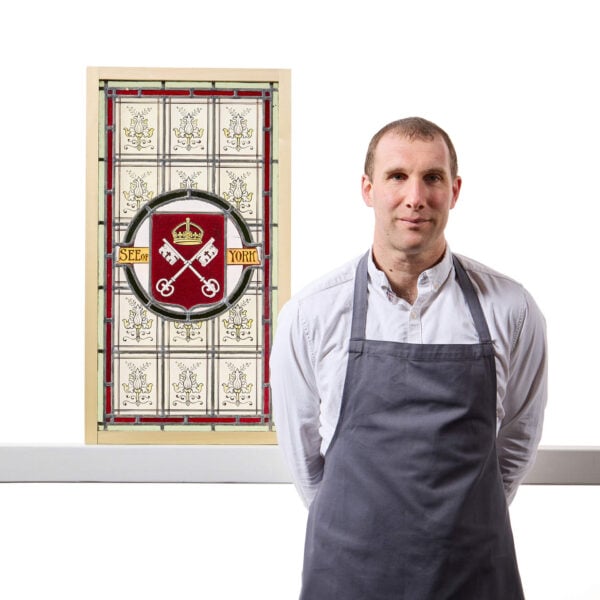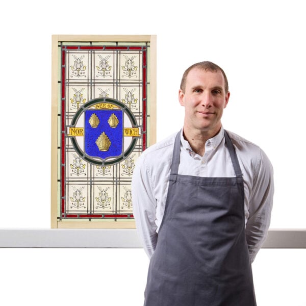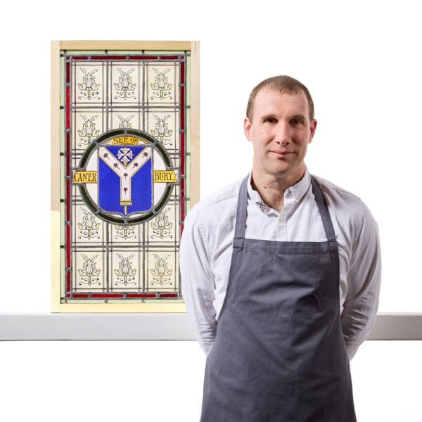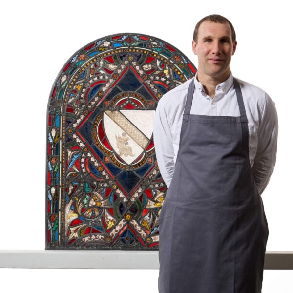 Antique Medieval Style Arched Stained Glass Armorial Window