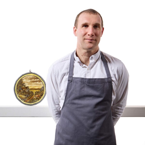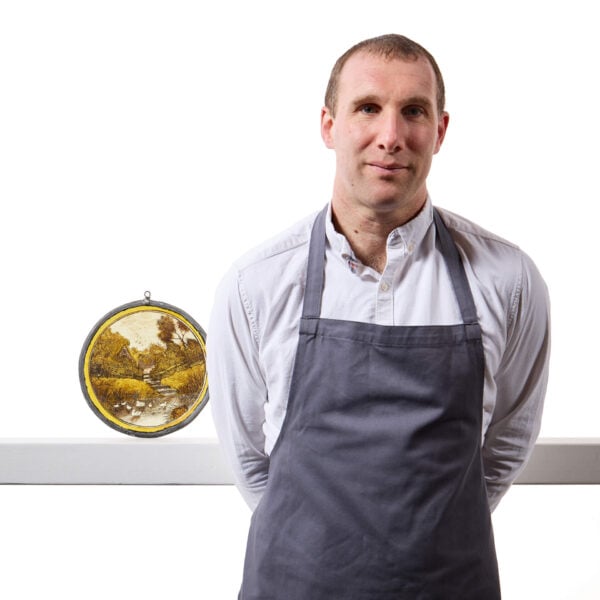 Antique Stained Glass Roundel Depicting an English Countryside Scene
