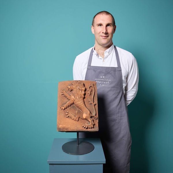 Antique Tudor Style Terracotta Rampant Lion Brick on Stand