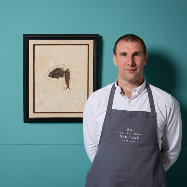 Reclaimed Limestone Fossil Fish Panel in Frame