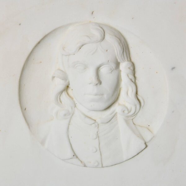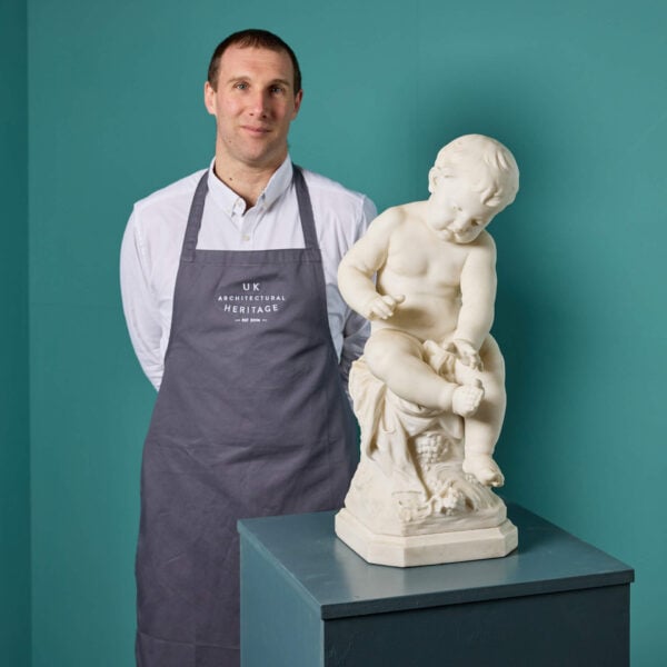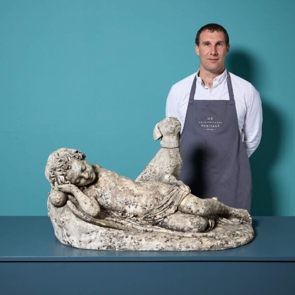 E. Wolff (1802-1879) Weathered Statuary Marble Sleeping Cupid & Dog Statue