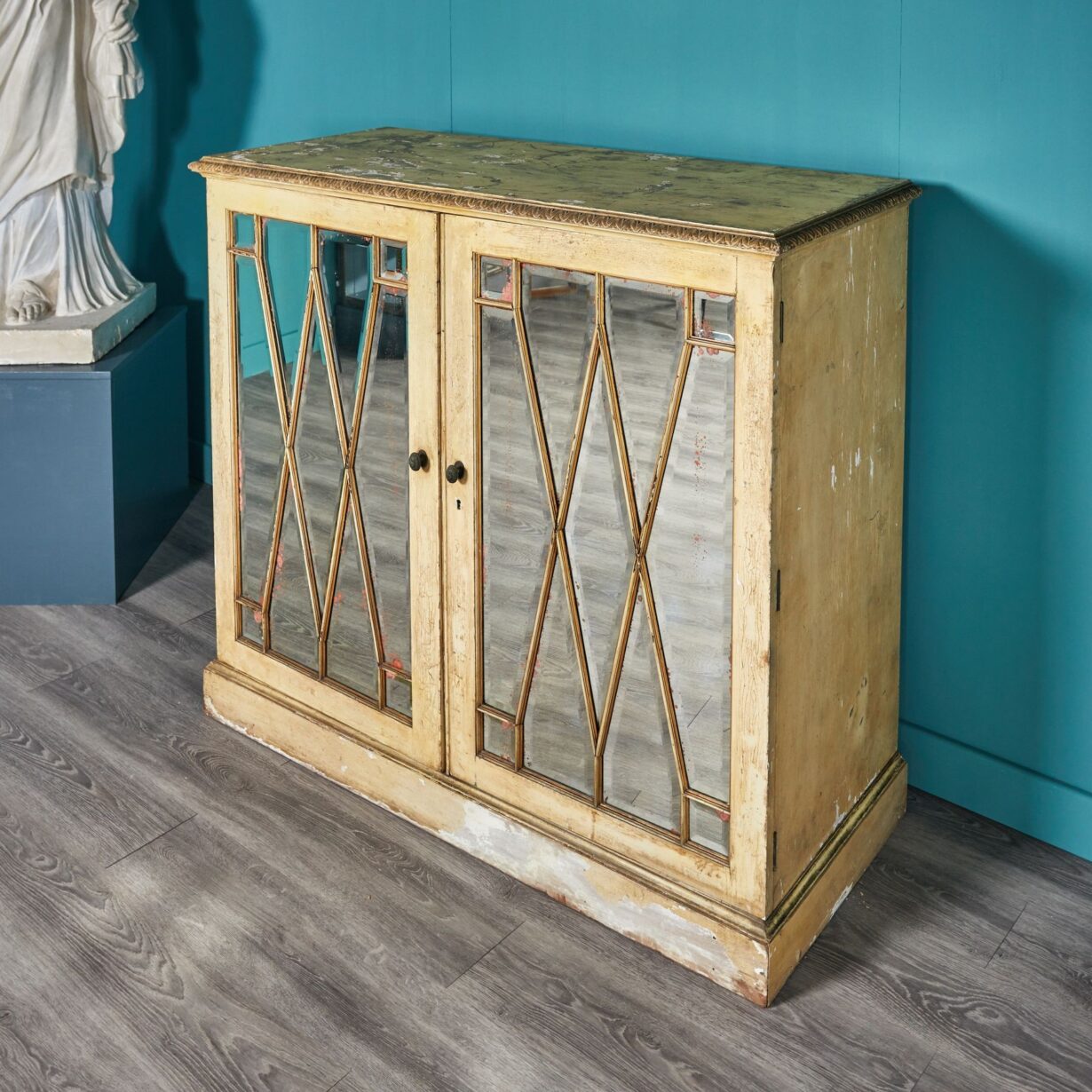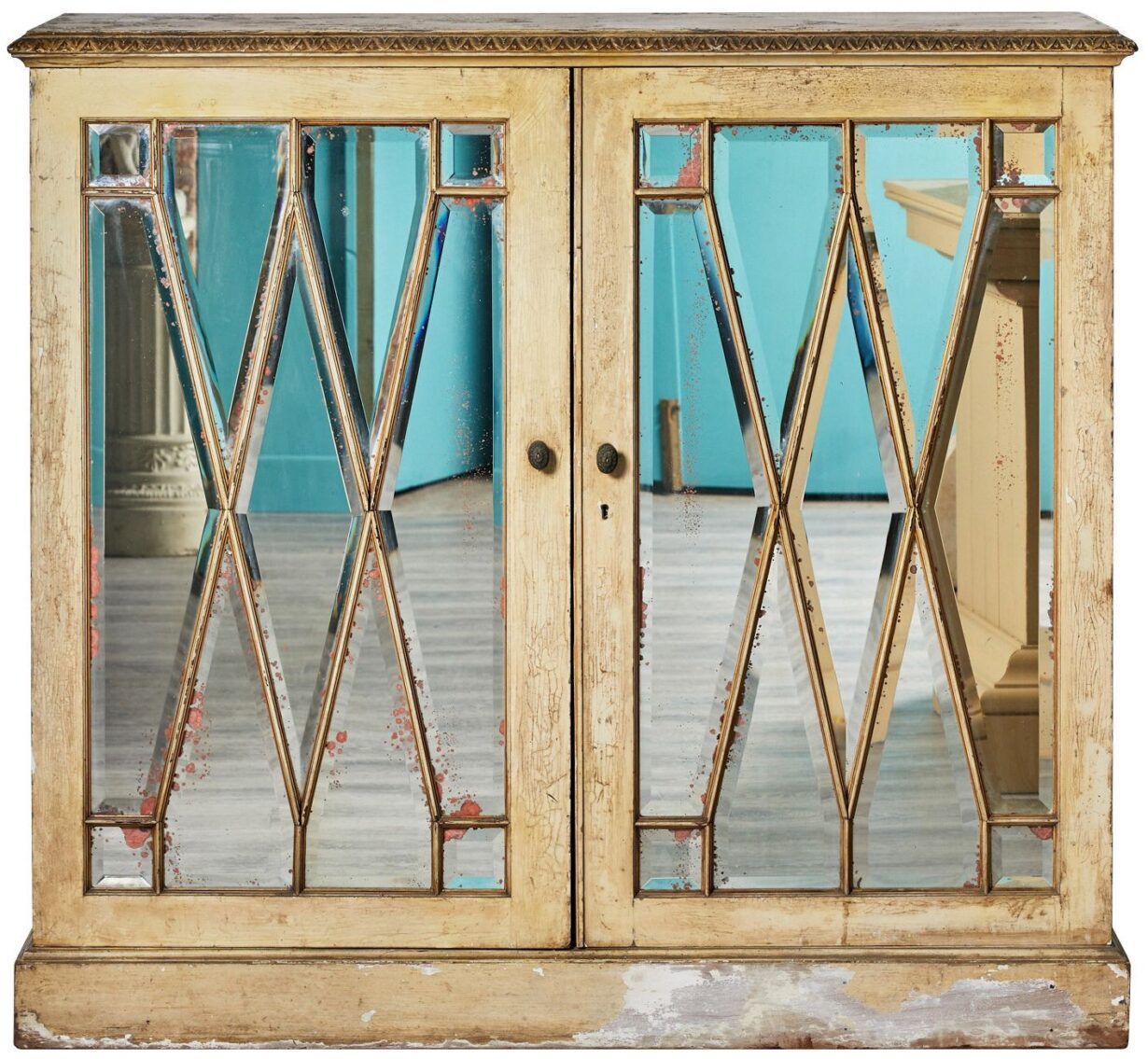 back to topAntique Astral Glazed Mirrored Cabinet. A wonderful large scale cabinet with original mirrored glass doors. The cabinet has Astral glazing with original bevelled Mercury mirrored glass. The doors open to reveal a large storage space. These could be customised with shelves.