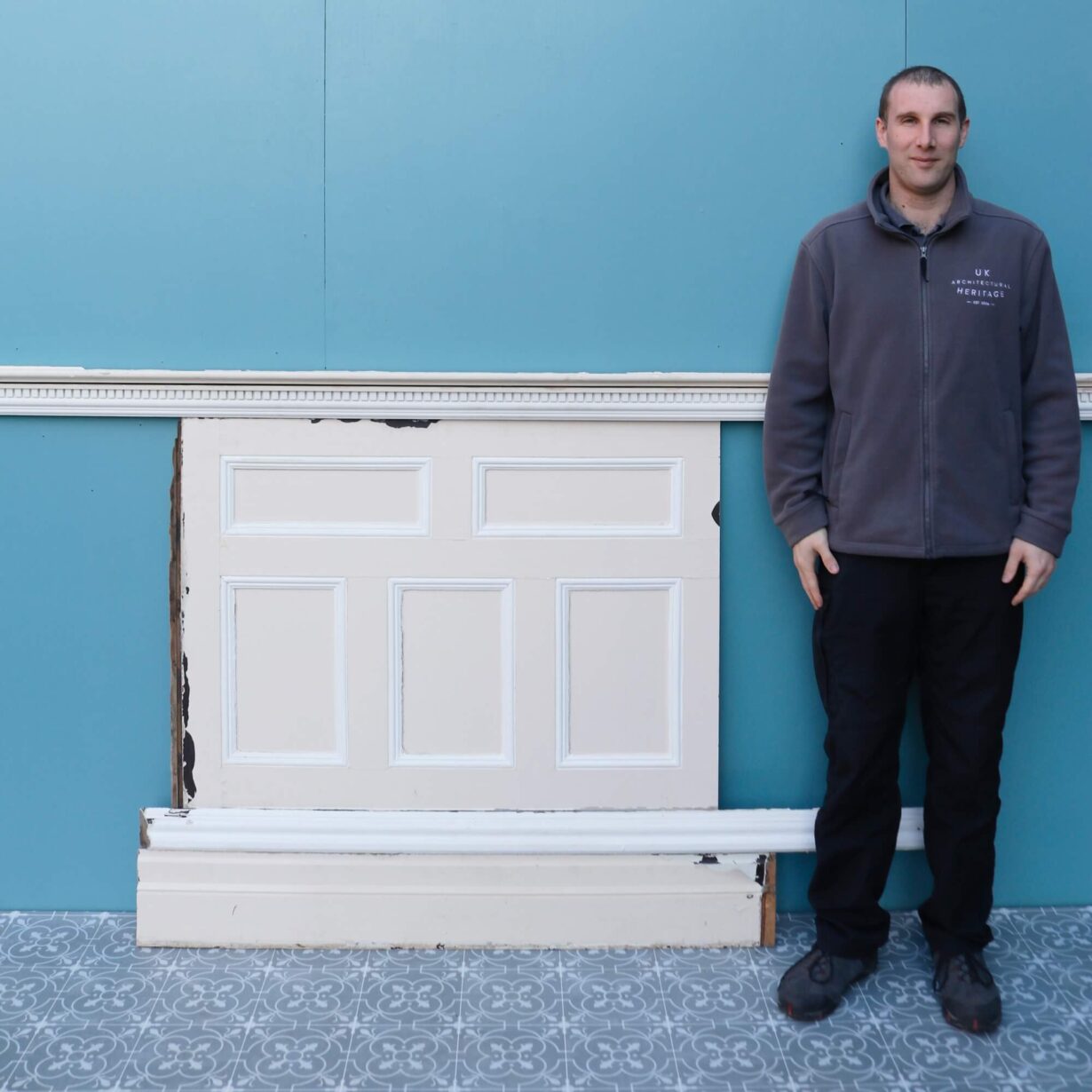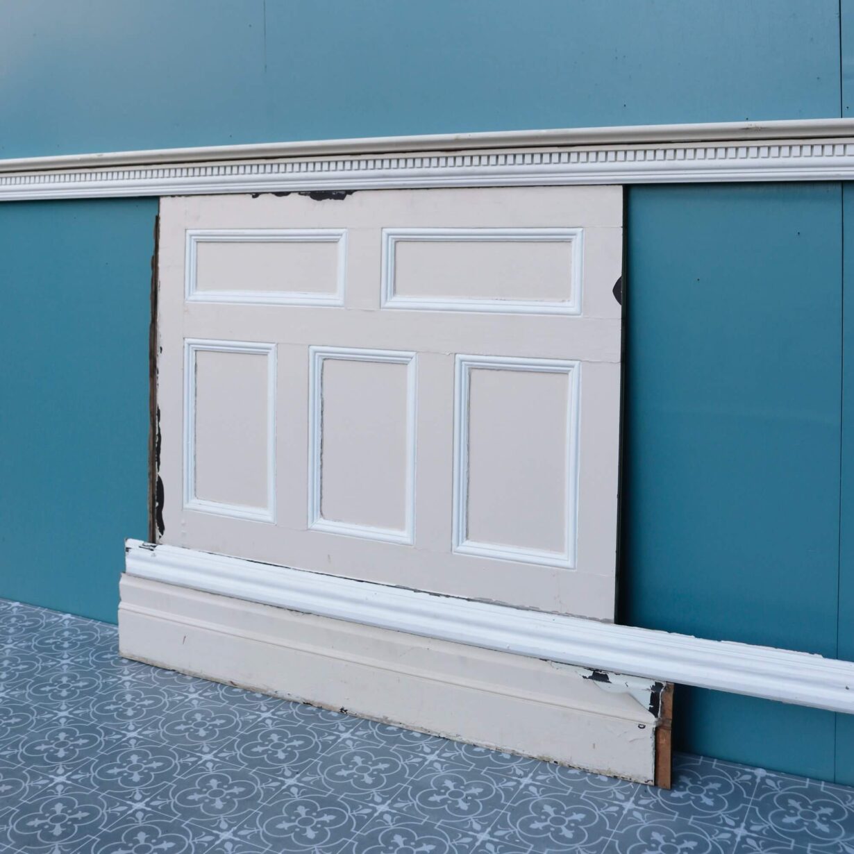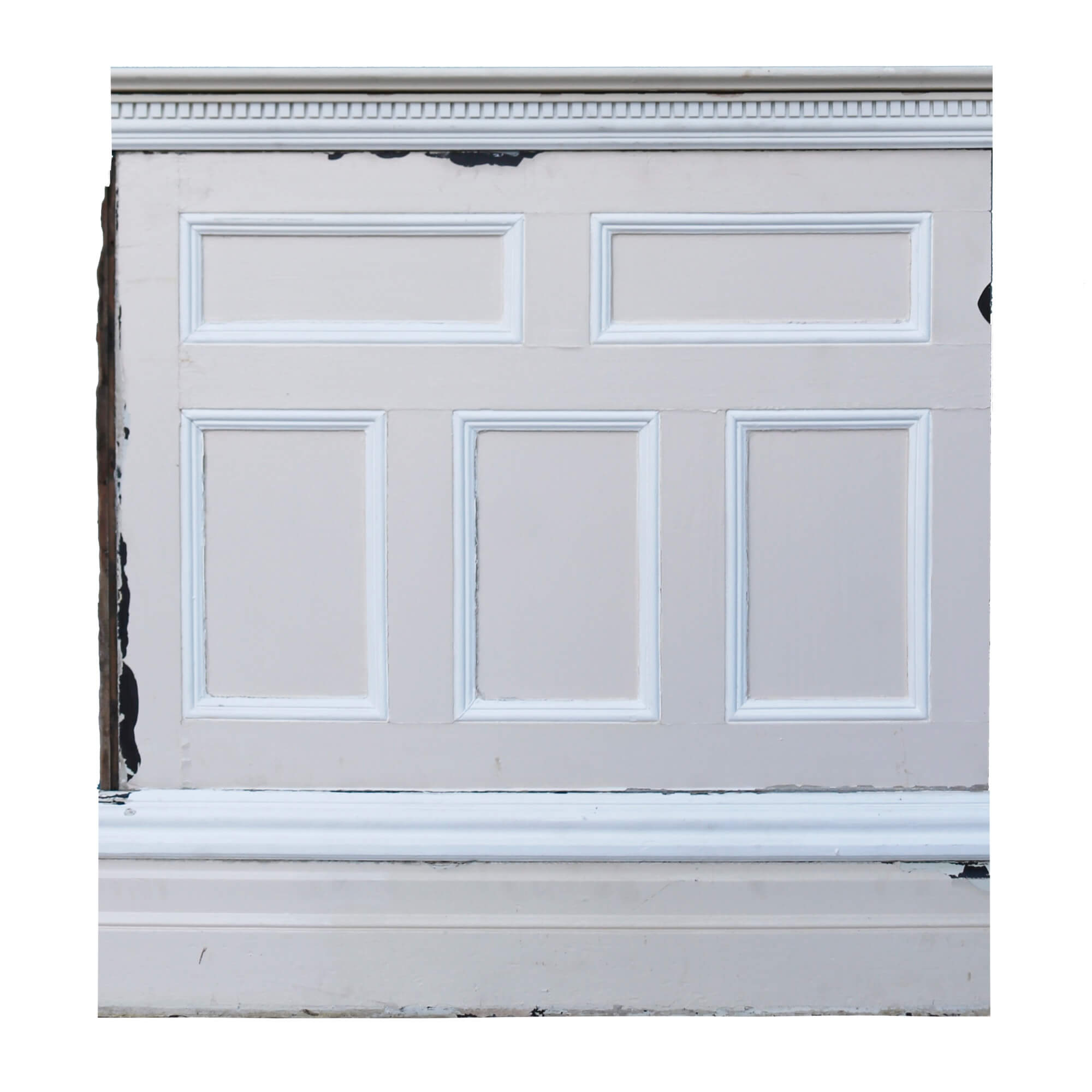 back to topThis extensive run of dado height wall panelling was reclaimed from a large country house near the quaint Oxfordshire hamlet of Sonning Eye. This set is comprised of 9 individual panels of varying widths (see below for details of dimensions) alongside 7 lengths of skirting, 4 lengths of rail and a small selection of spares. Together, the panels, skirting and rail create a 15.7m long run of 1.23m tall panelling that makes a striking feature in homes traditional and modern.