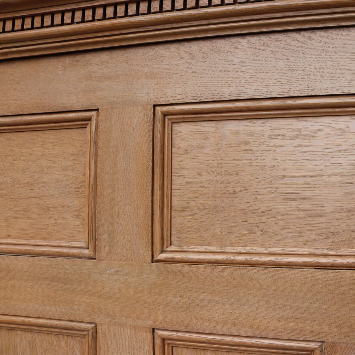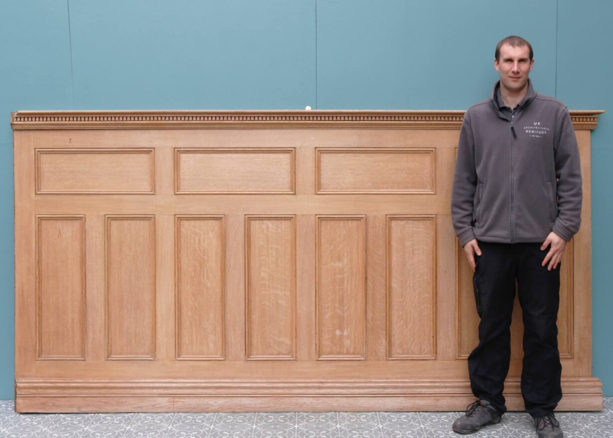 back to topThis large run of dado height reclaimed oak wall panelling was sourced from a large country house near Reading. The set is comprised of 12 individual panels of varying widths (see below for details of dimensions) alongside 6 lengths of dental capping and a small selection of spares that can be used for alterations and repairs. Together, the panels and capping stand at 151cm tall, creating a long run of 16.9m dado height wooden wall panelling. This makes a beautiful feature in the large hallway of a period home or in a contemporary setting to instil a traditional feel.