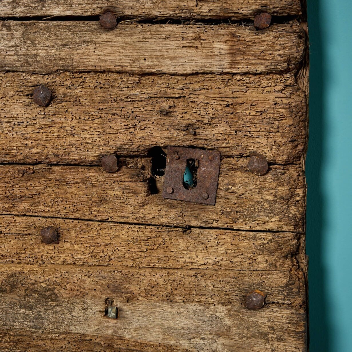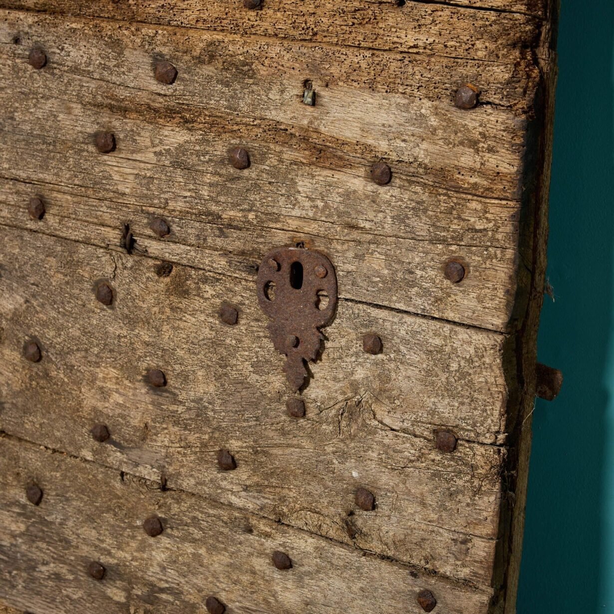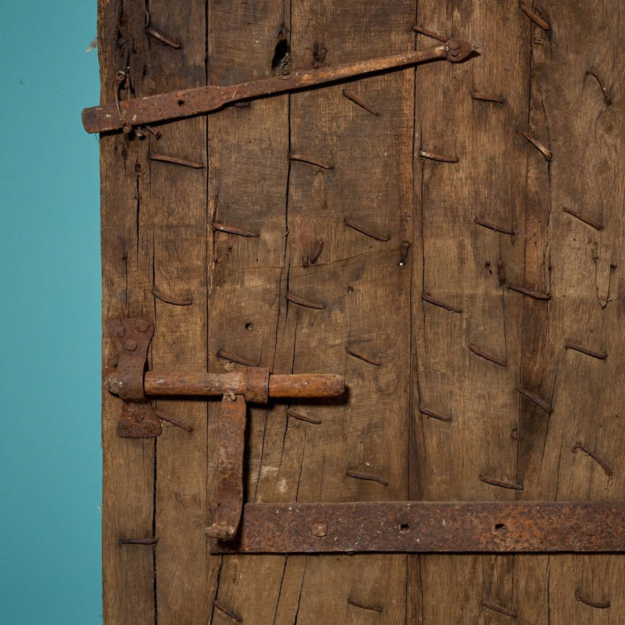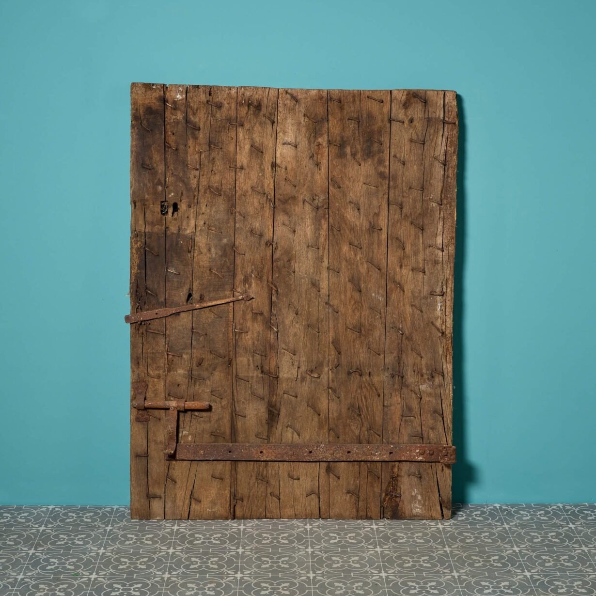 It’s construction is unusual – the 1.32m height not usable as a traditional door – but sturdy, with a studded oak plank structure and remnants of old hardware. With it’s worn, rustic look, this ancient door will make a brilliant feature piece of a traditional country cottage or farmhouse. It could even be repurposed, making a unique coffee table or decorative panel, steeped in stories and history!