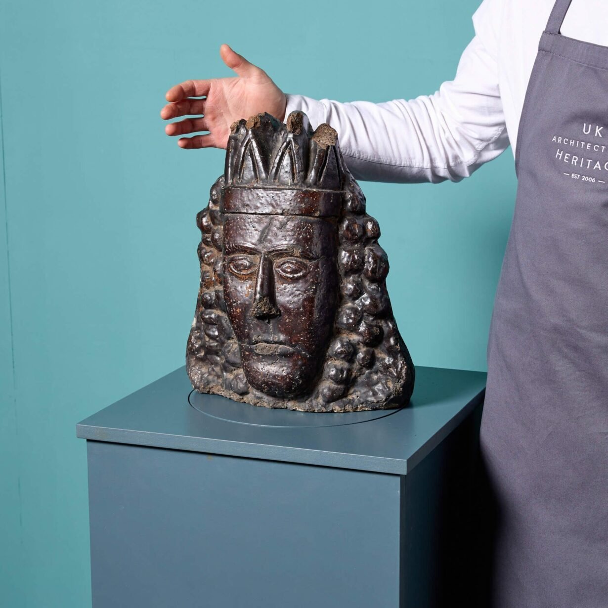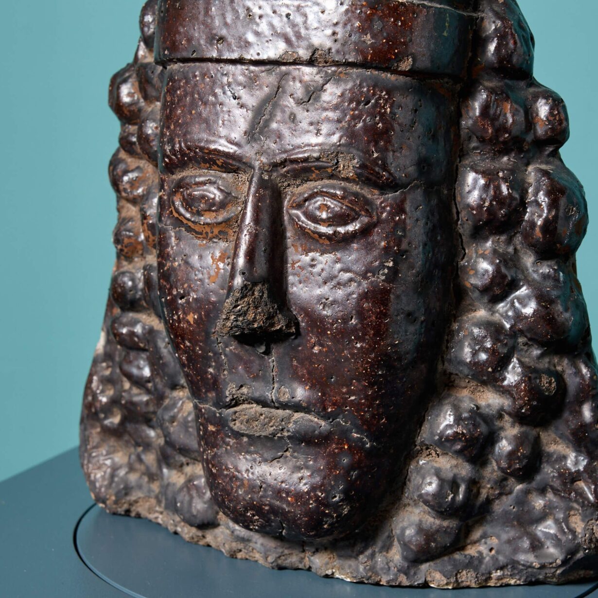 back to topA rare 17th century glazed stoneware bust of King James II. James ruled as King James II of England and VII of Scotland from 1685 – 1688.