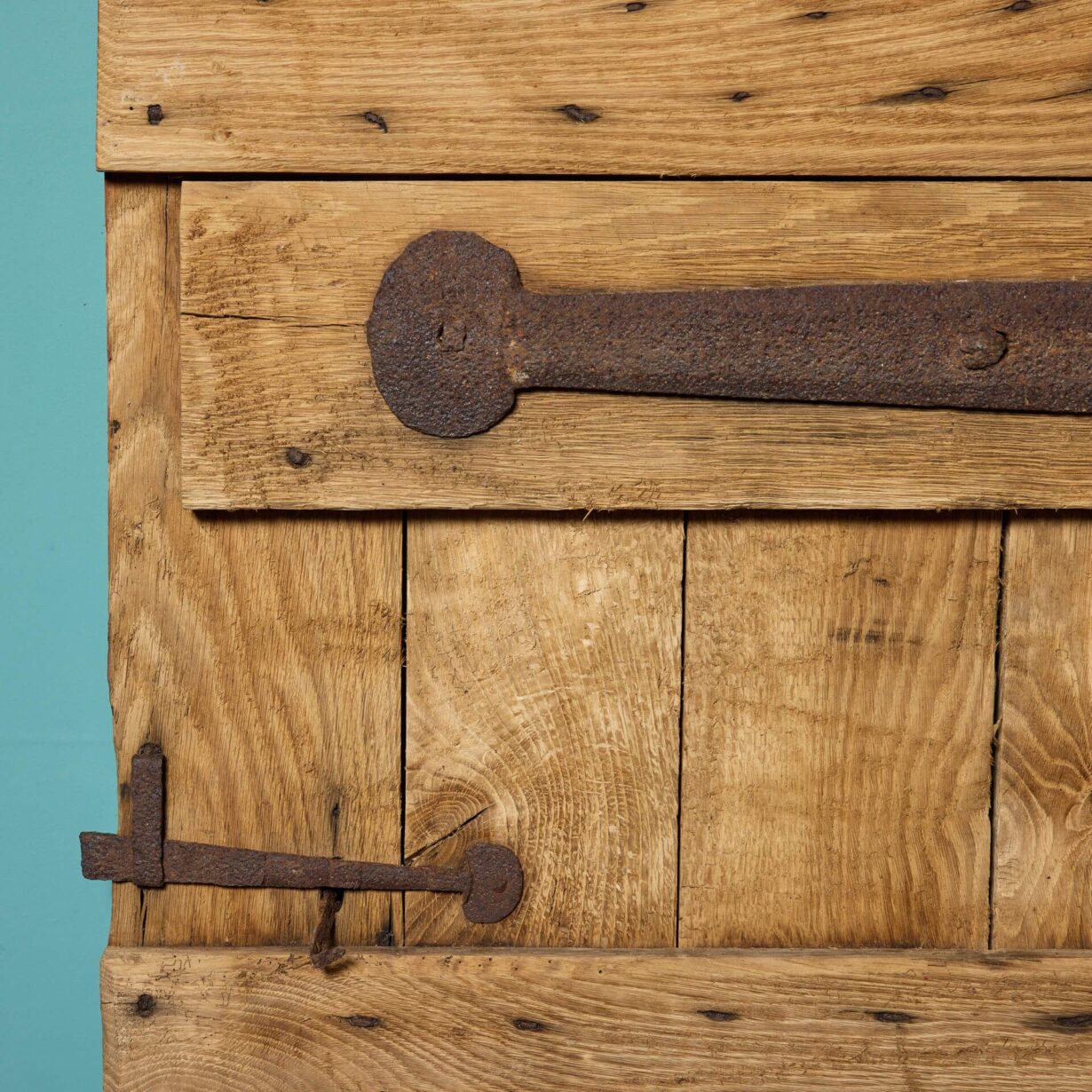 back to topAn antique English oak plank door dating back to the 1600s suitable for interior or exterior use.