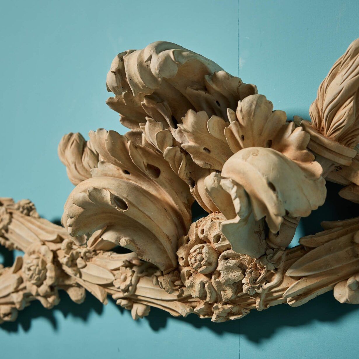 back to topA very deeply carved mid-18th century Georgian overdoor, circa 1750. Beautifully carved in the shape of a figure of eight and embellished with carved foliage, this 275-year-old overdoor will make a stunning wall decor piece anywhere in the home. Position above a door or archway to bring instant grandeur to a space, or simply affix to an interior wall as a statement architectural piece.