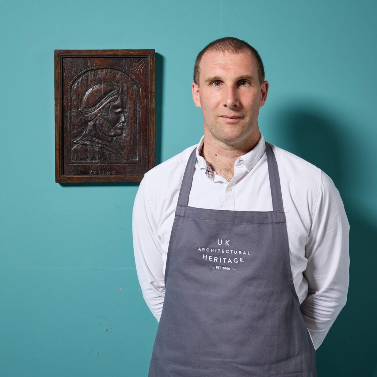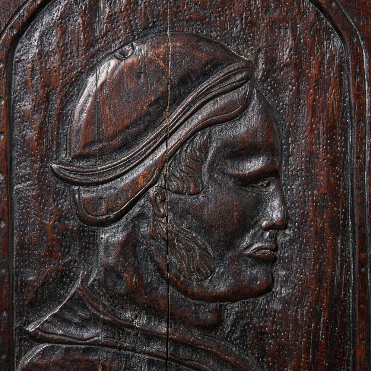 back to topA fascinating late 17th/early 18th century medieval style carved oak panel of French origin depicting a Romayne-type profile portrait of Saint Luke, also referred to as ‘Luke the Evangelist’.
