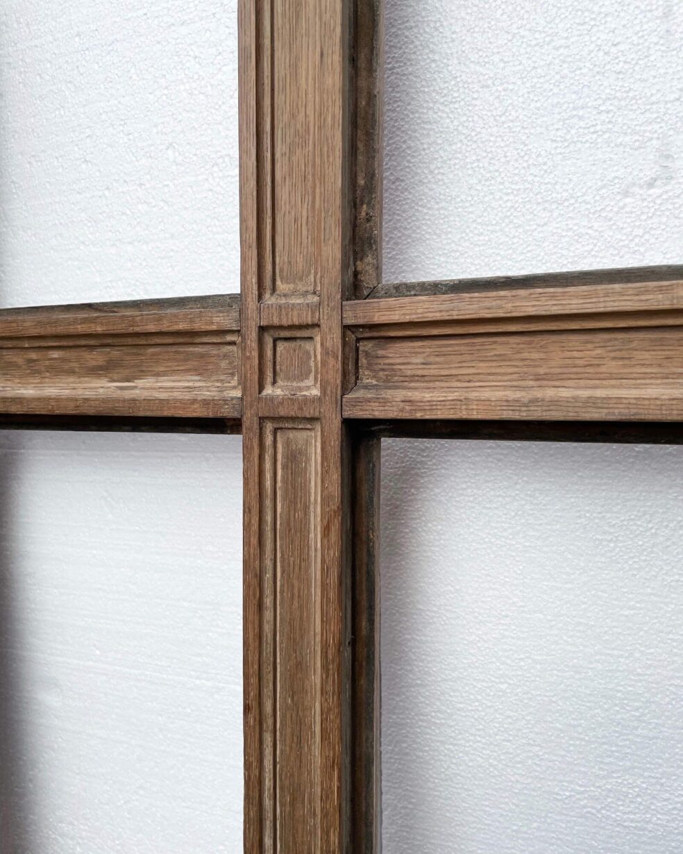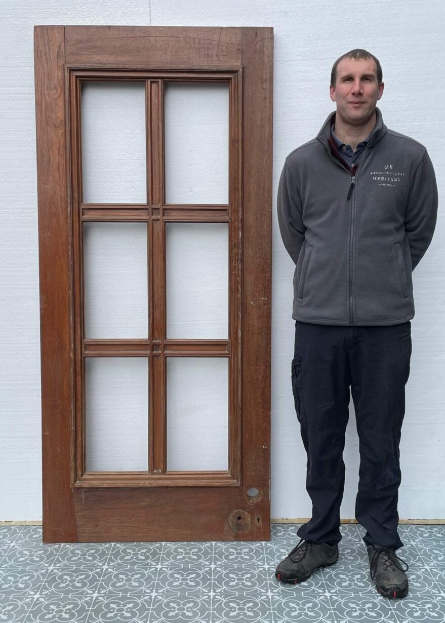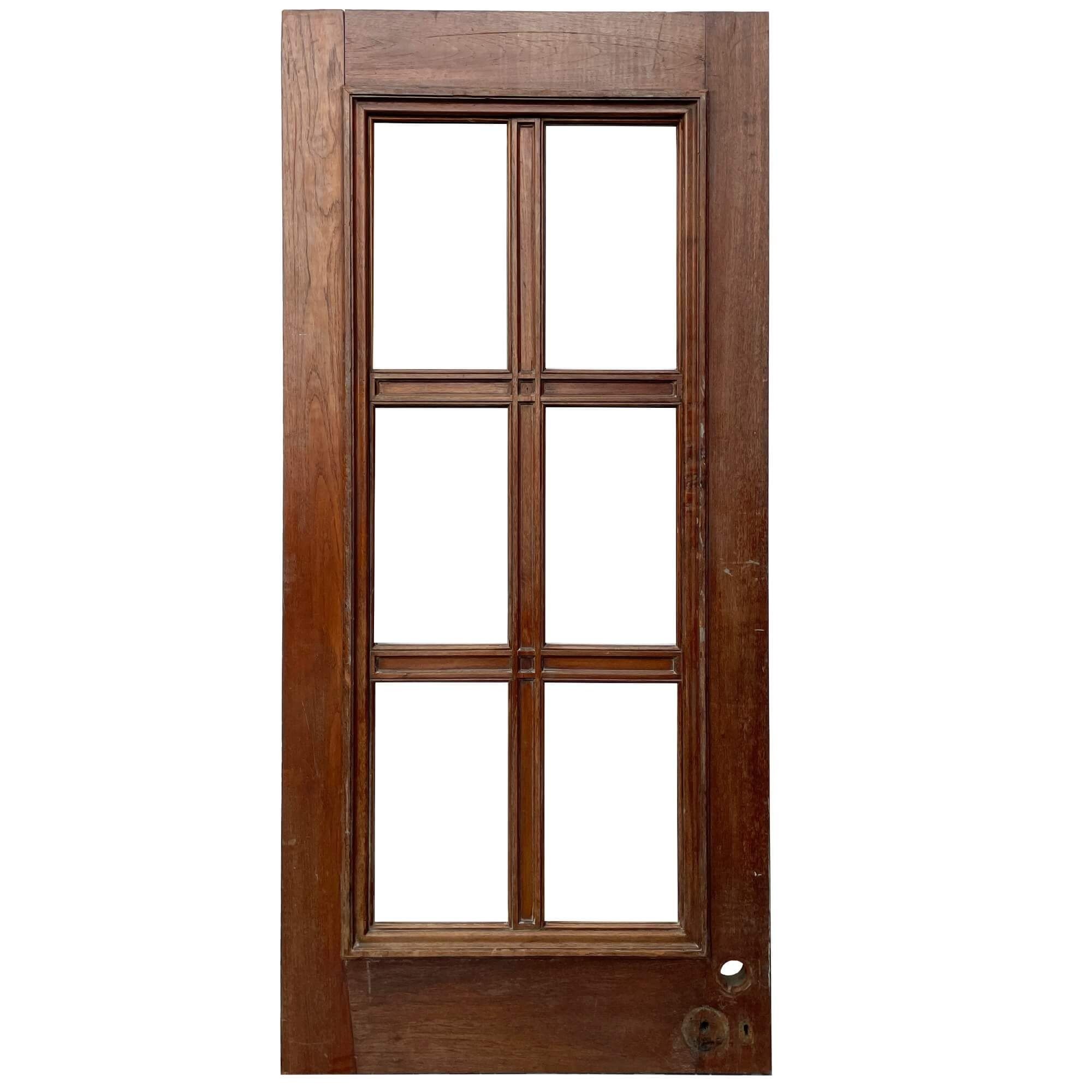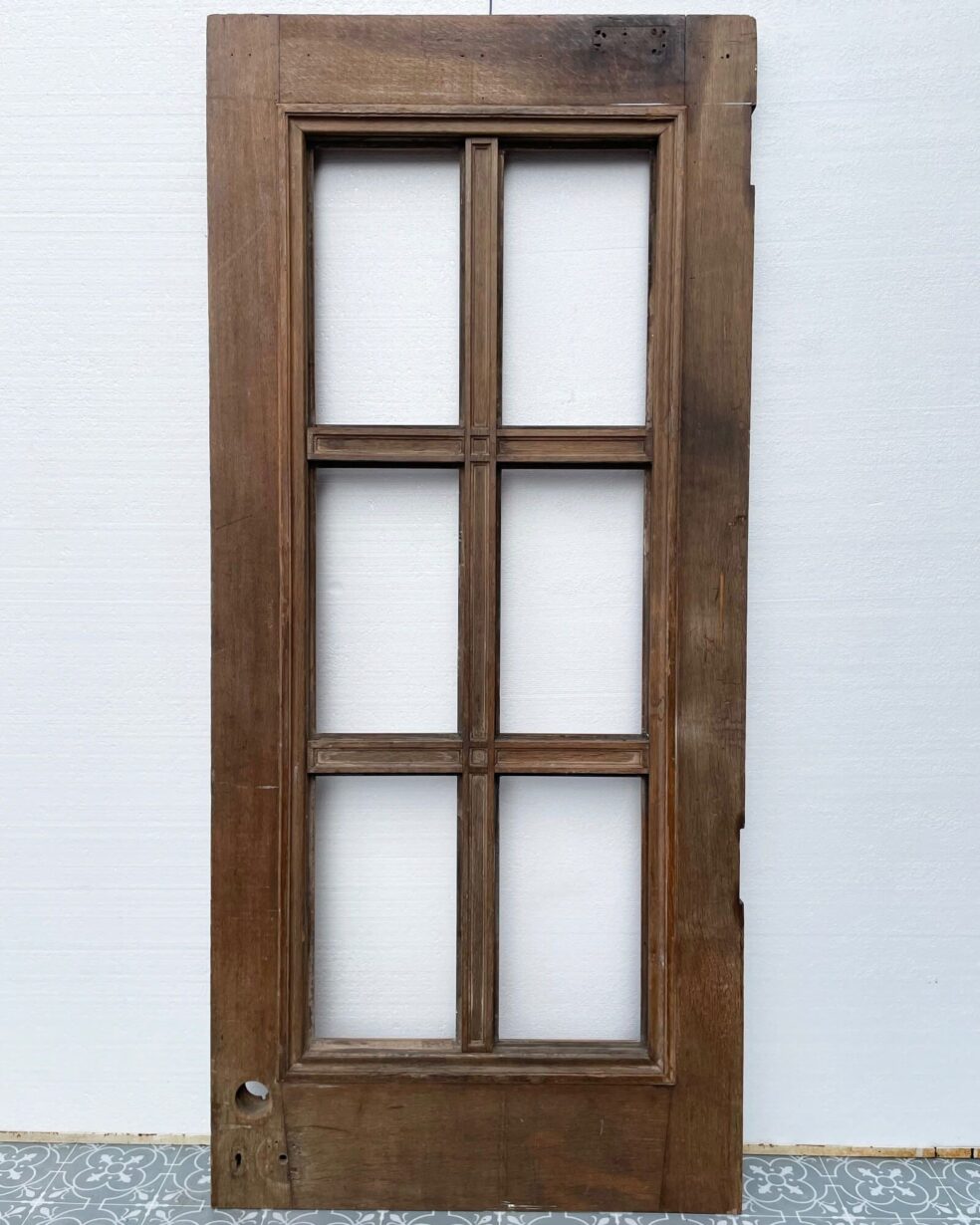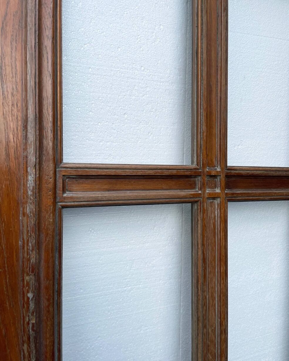 back to topA heavy and well-constructed unglazed reclaimed Art Deco internal door or panel circa 1930. Constructed from thick hardwood timbers, possibly teak, this reclaimed door features 6 empty panes ready for glazing in glass of your choosing. Alternatively, it could be inserted with mirrors to create a striking mirrored panel.