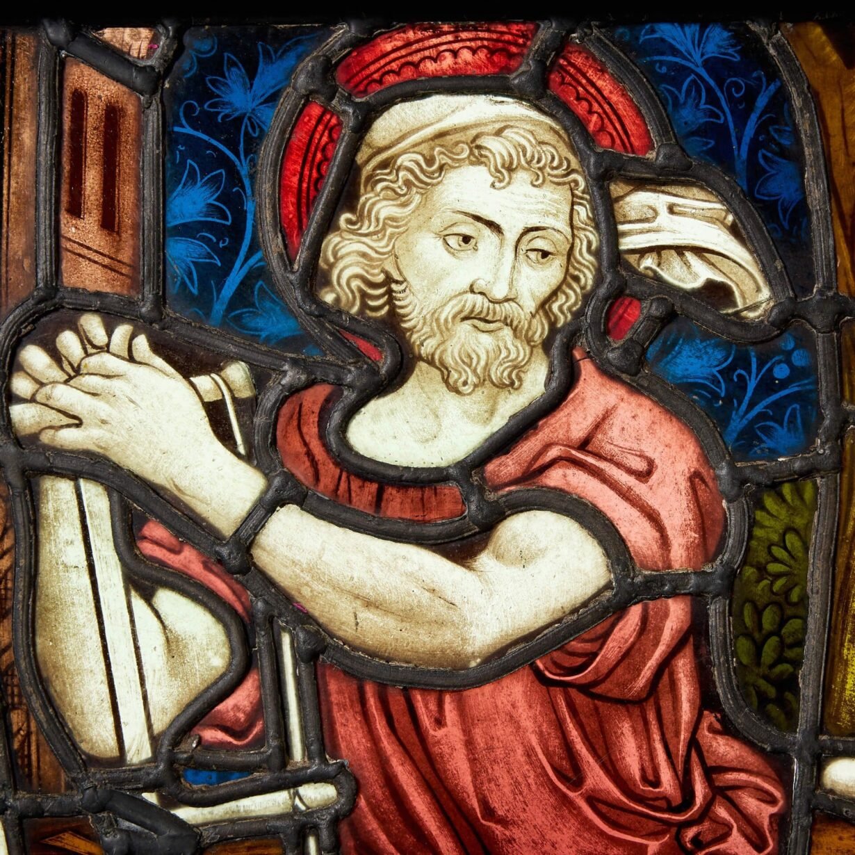 back to topA good quality condition and richly toned Ecclesiastical figural stained glass window circa 1890 from the studio of Clayton & Bell.