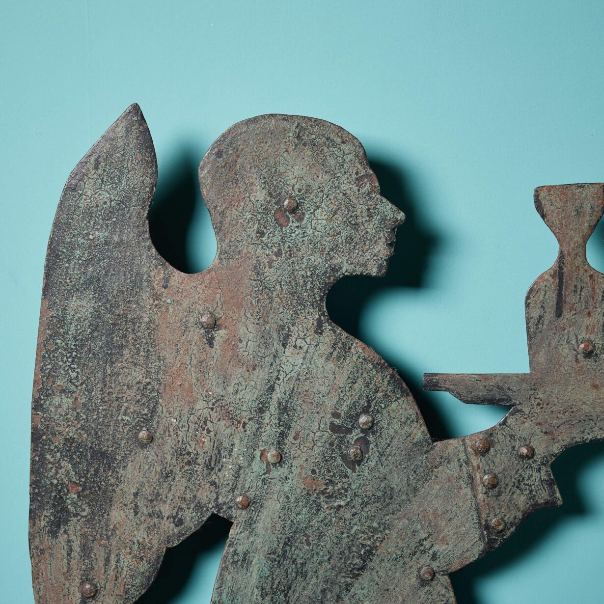 back to topA simple yet effective early 19th century iron wall plaque of a decorated angel.
