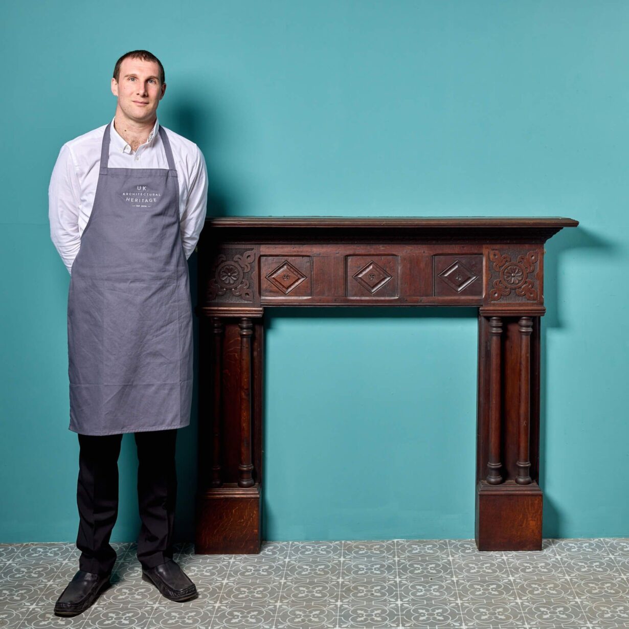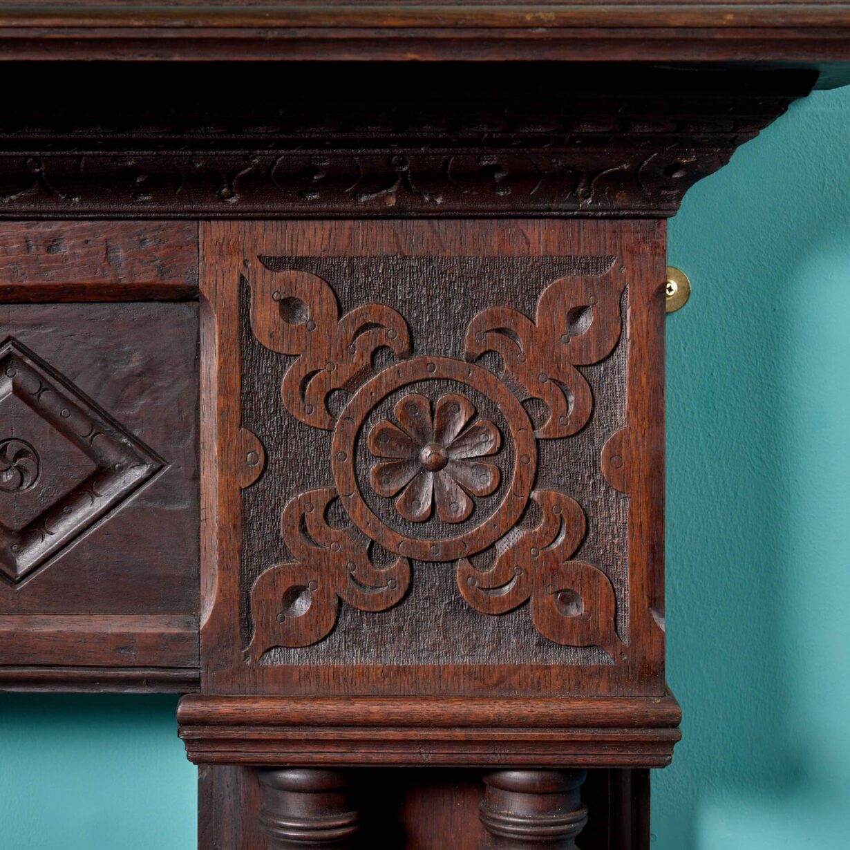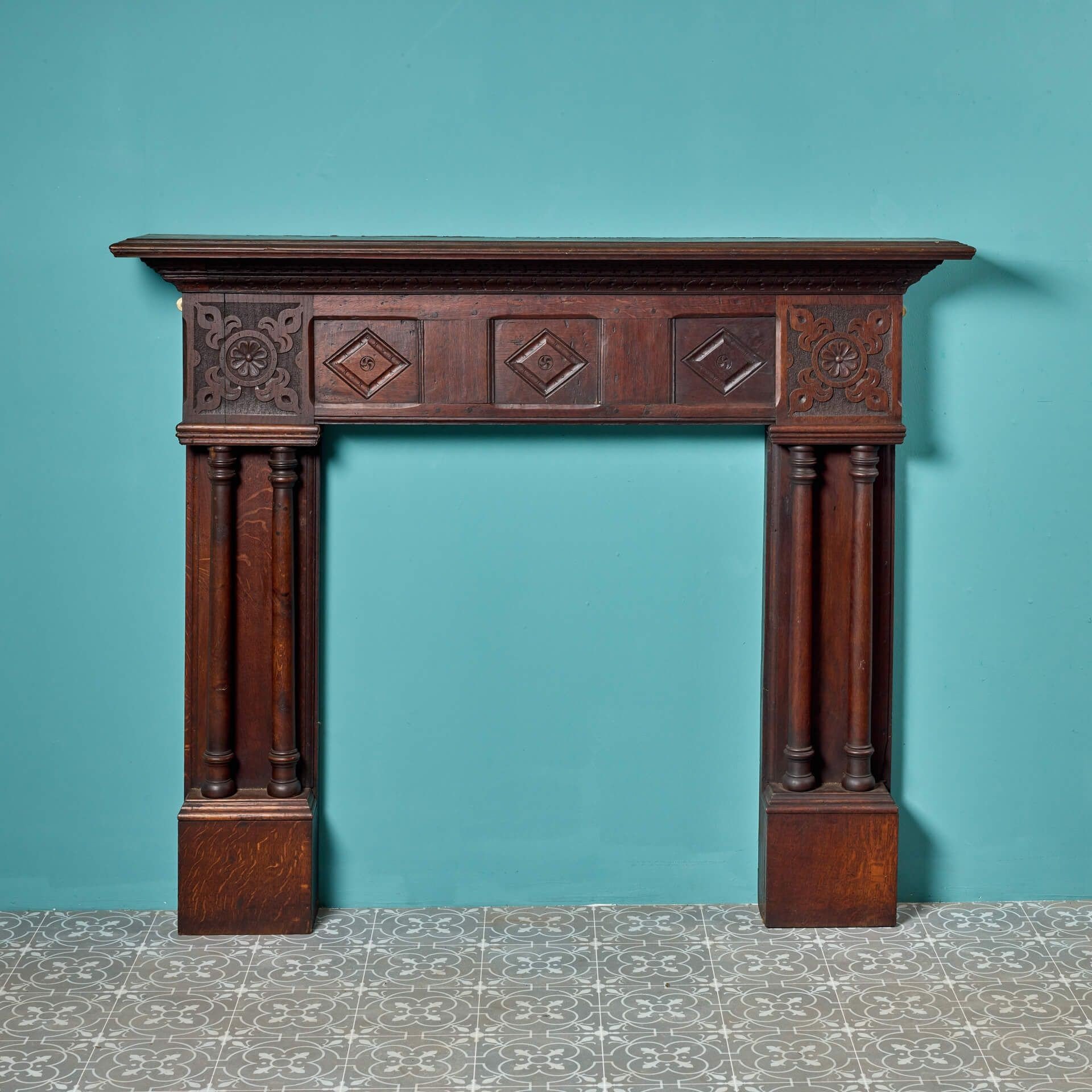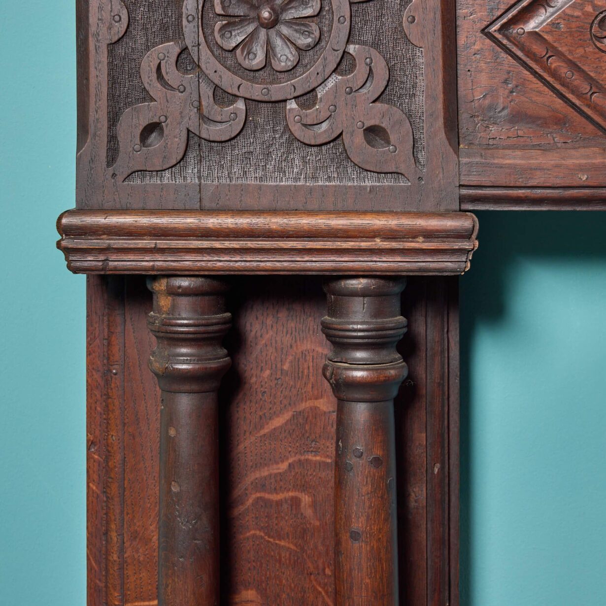 back to topA beautifully crafted 19th century antique oak fireplace constructed using early timbers from the Jacobean and Tudor periods. This impressive fire surround makes quite the impression in a period property with its dark oak finish, panelled frieze, carved corner blocks and unusual double column jambs. At over 150 years old, this Jacobean style fireplace is in good condition, the exquisite craftsmanship having stood the test of time for more than a century.