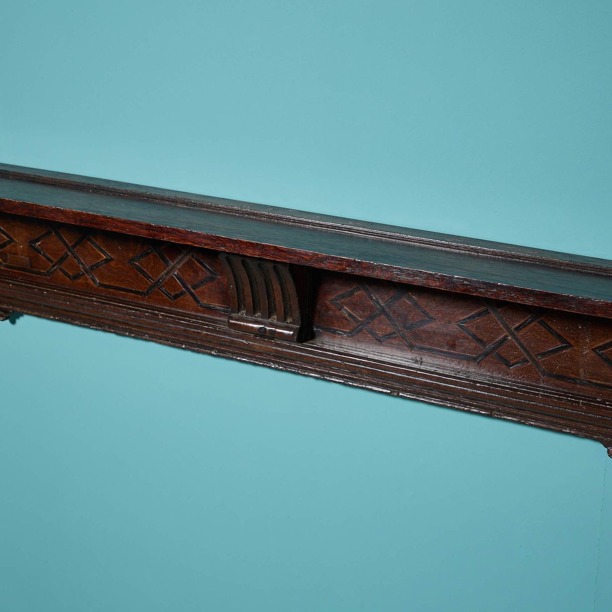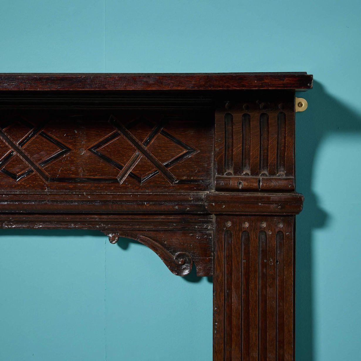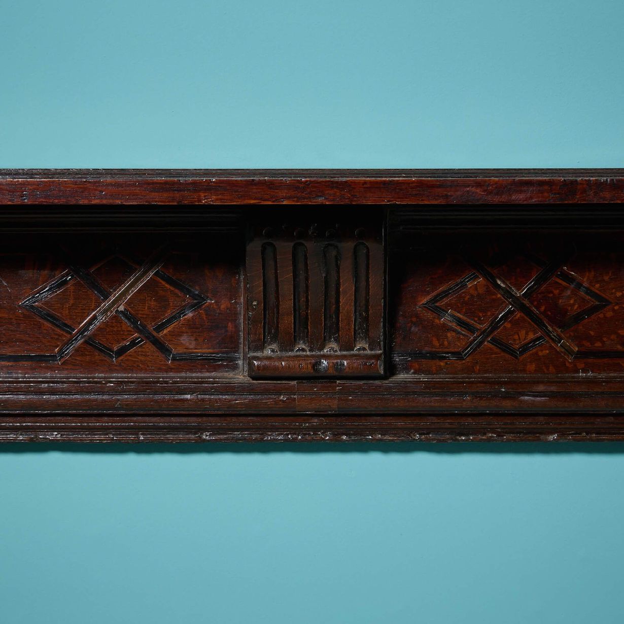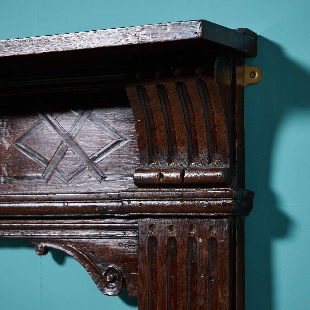 back to topThis 19th Century large scale English oak inlaid fireplace is a combination of parts dating back to the early 17th Century and possibly earlier.