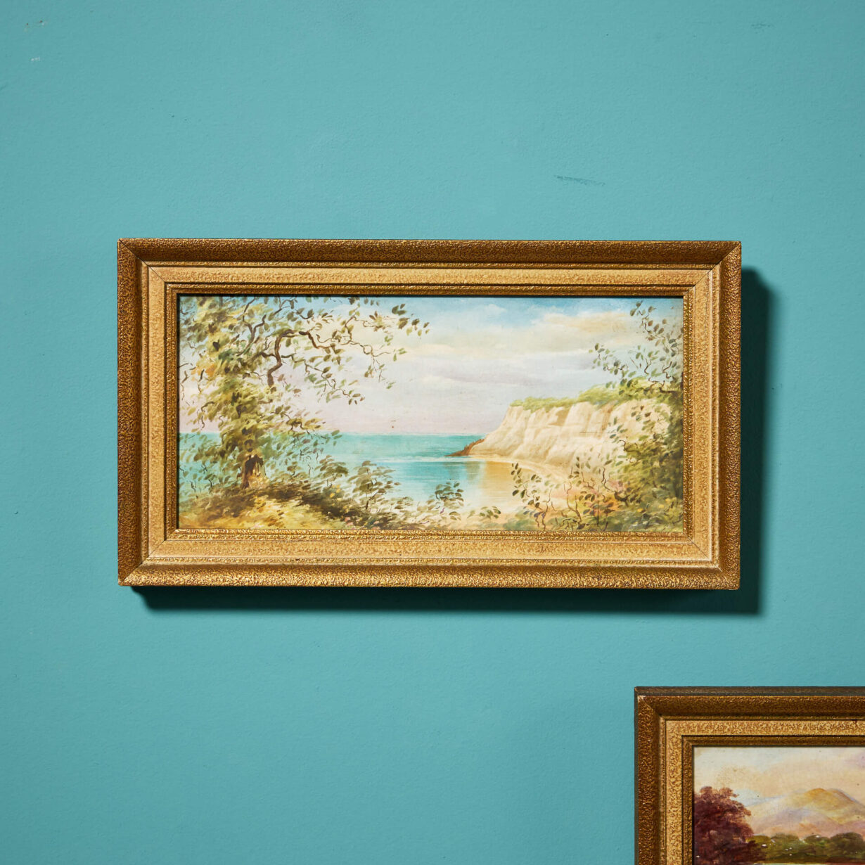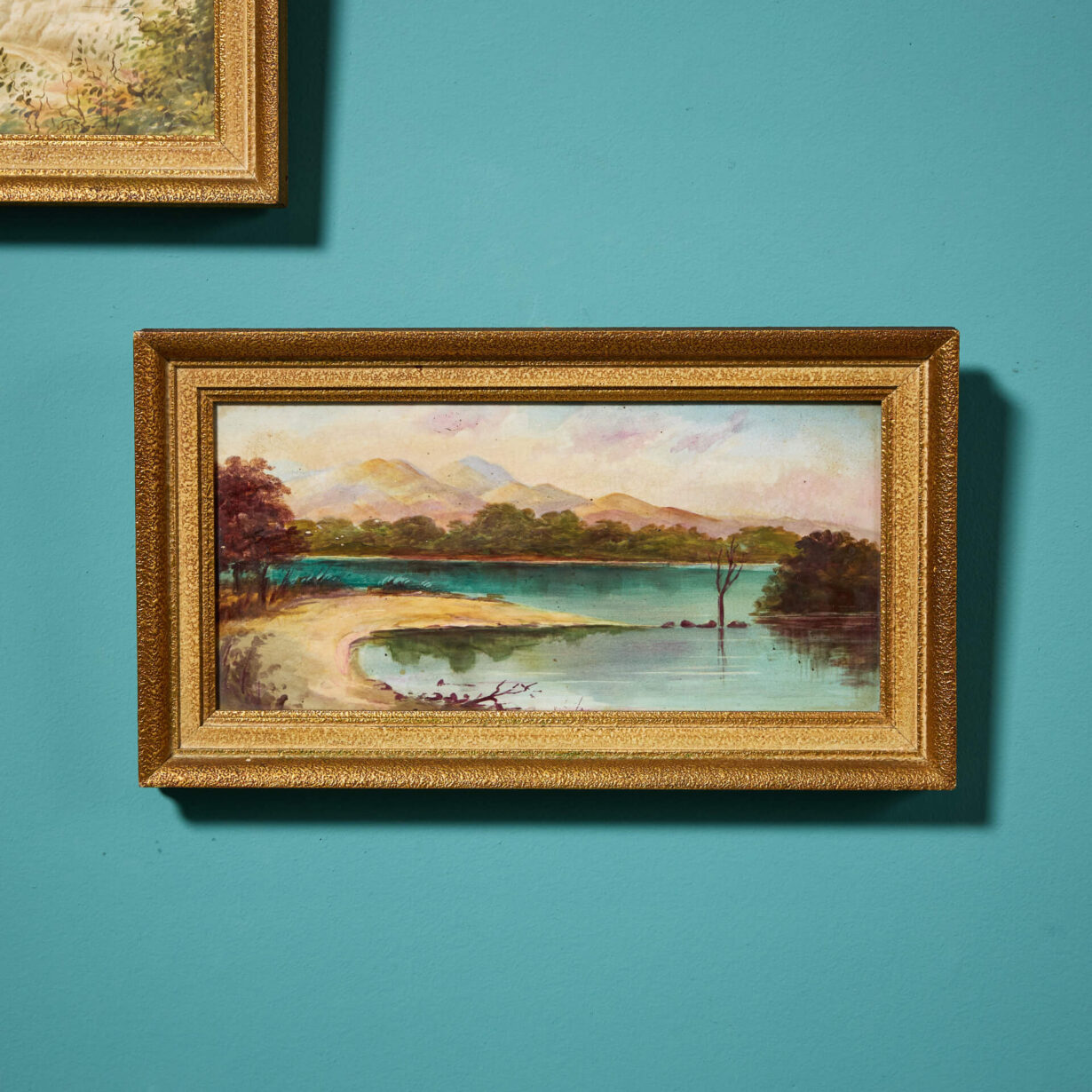 Finely painted with exceptional detail, these two scenes have themes of still water and reflections. Presented in Gilt Gesso frames, the detail is so fine that only on physical inspection does it become obvious they are on tile.