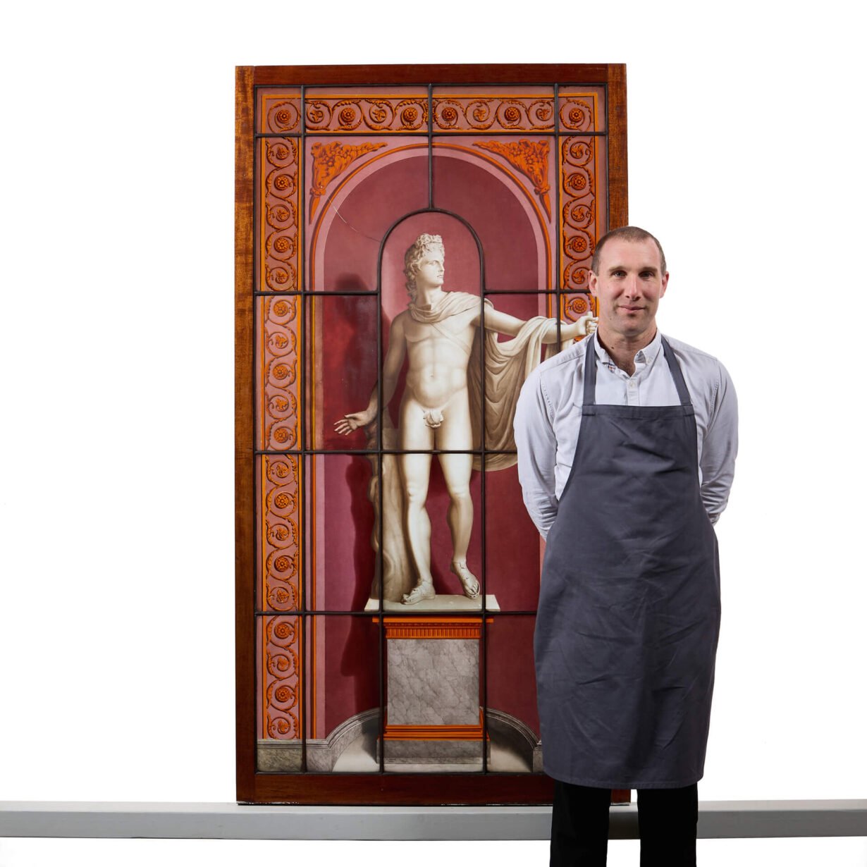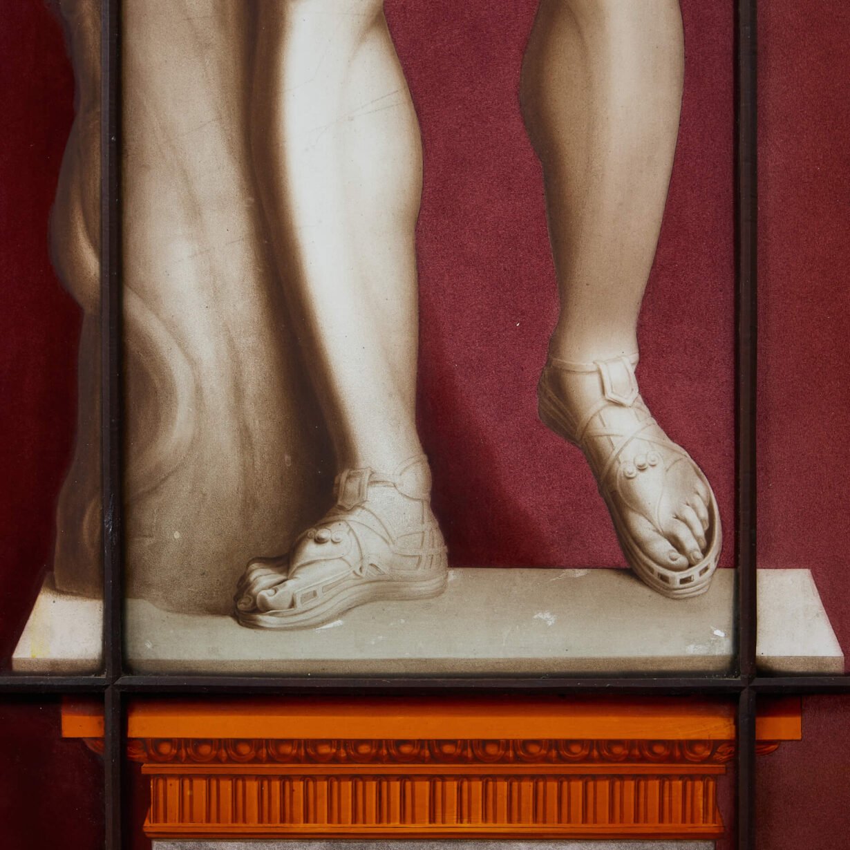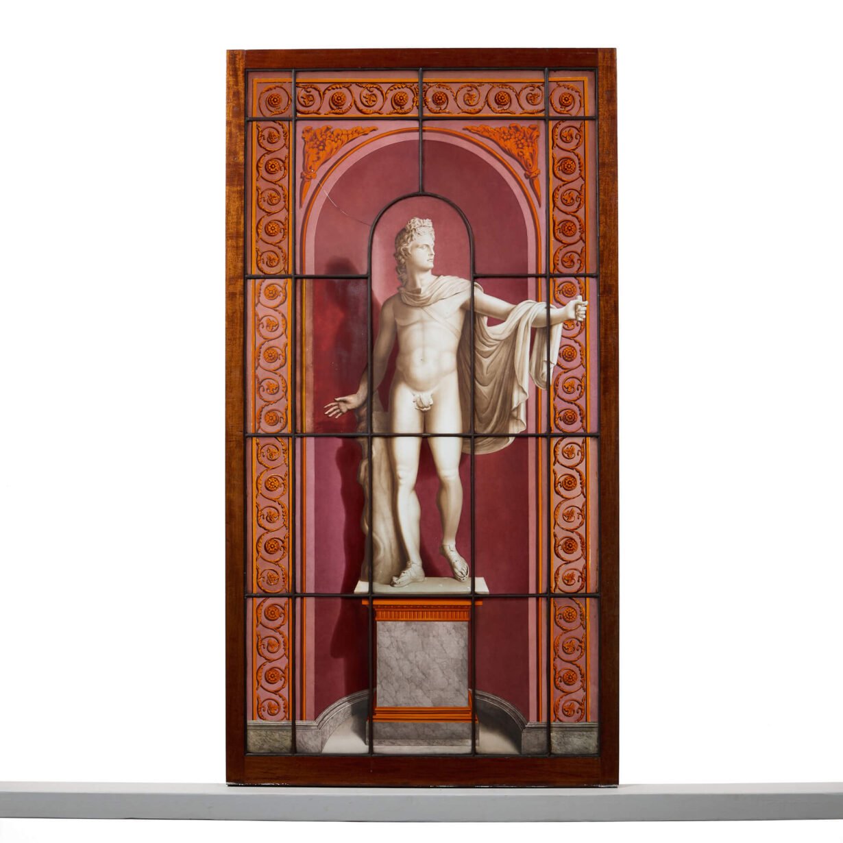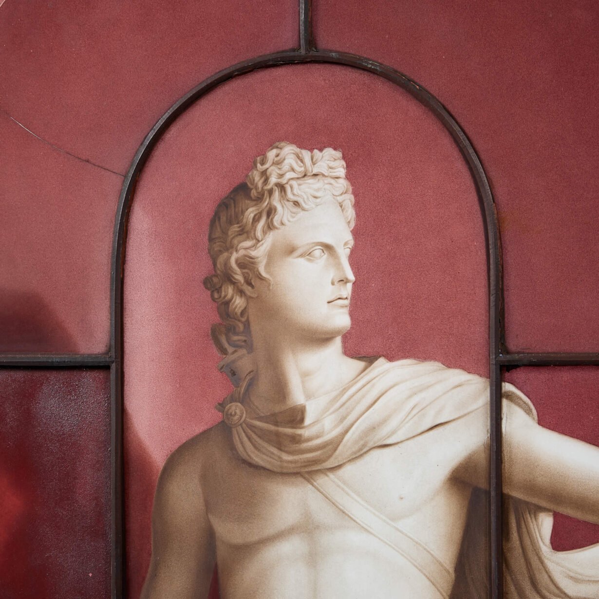 back to topThis 19th century stained glass of Apollo Belvedere by W. Doyle is signed and dated to 1814.