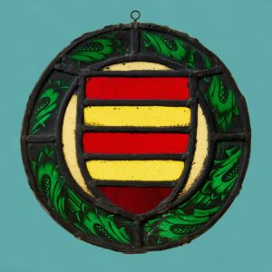 back to topA 19th century stained glass red and yellow armorial shield roundel dating to circa 1900.