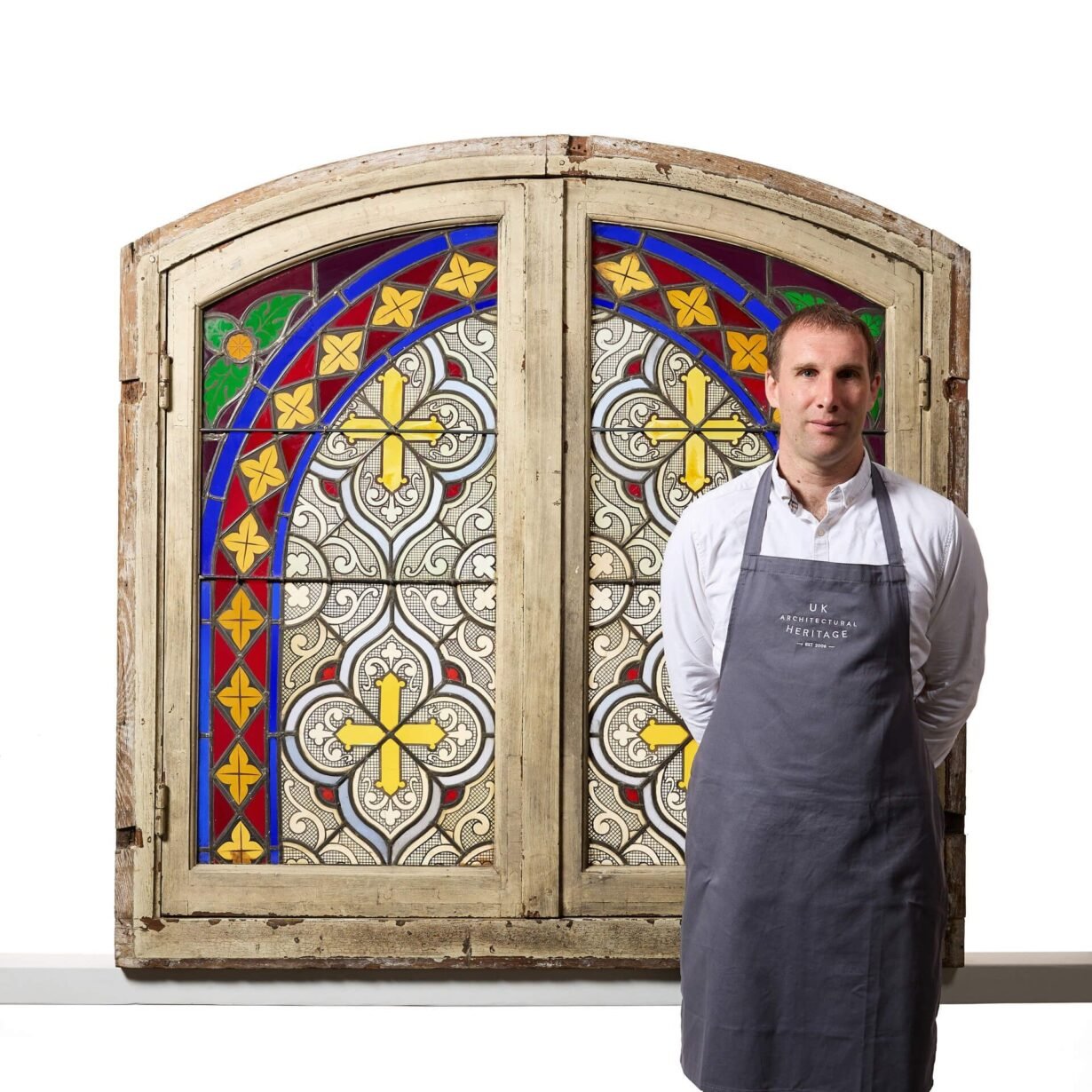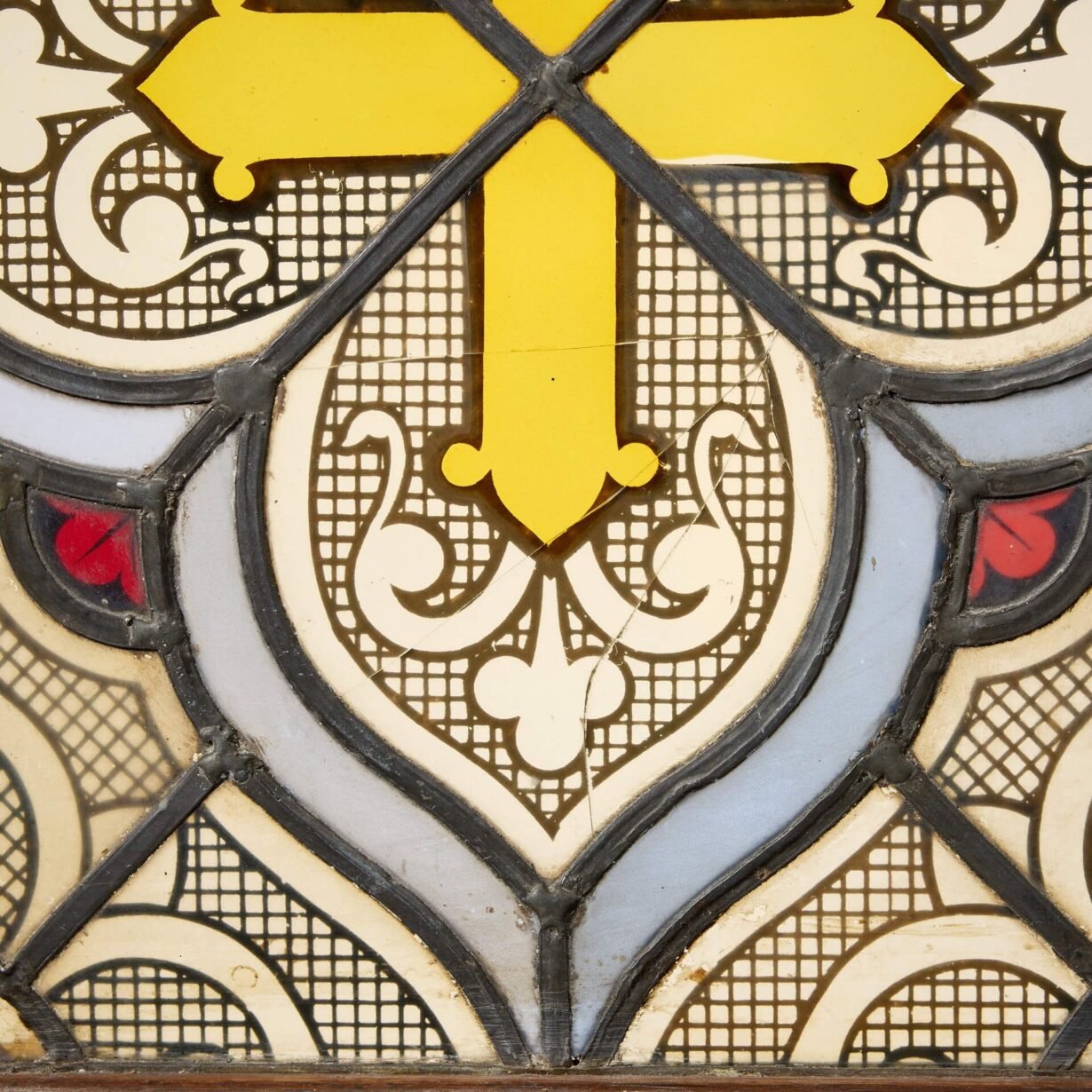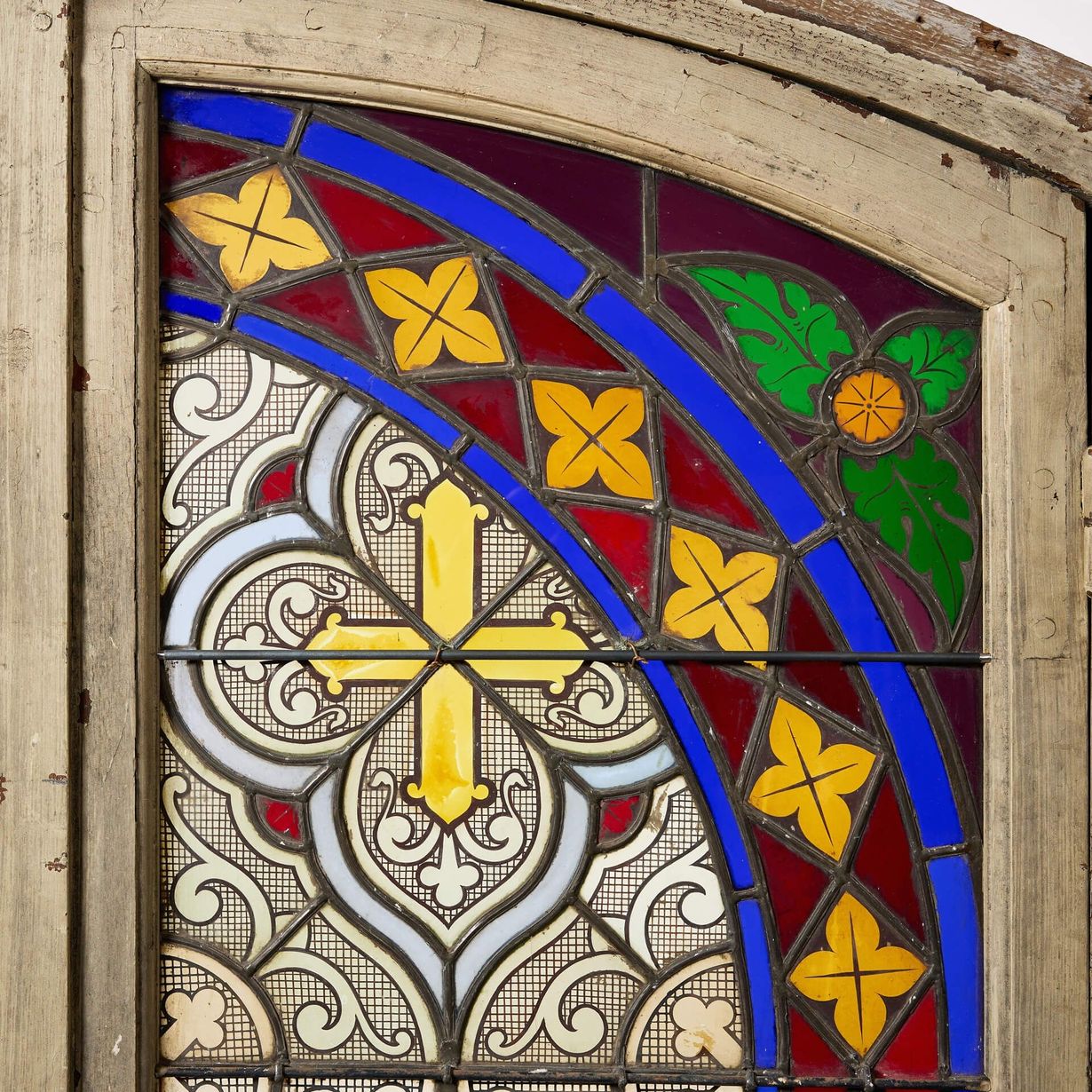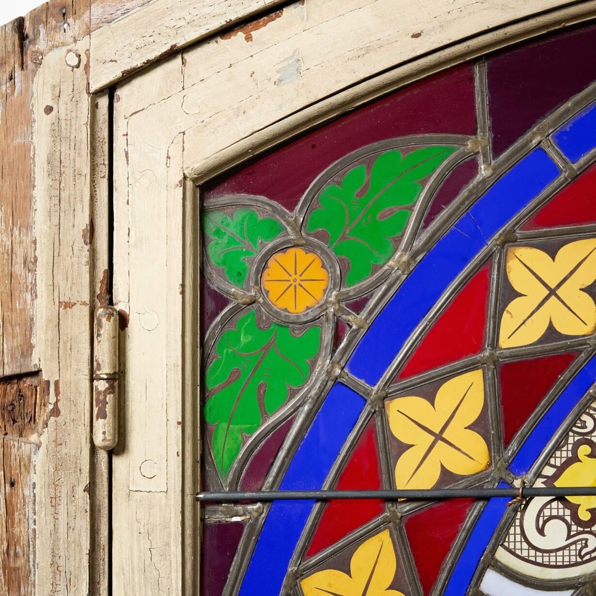 You can just imagine this antique stained glass window once positioned eastward on an old French cottage, the colours brought to life by the sunshine of early morning. At over 100 years old, it makes a stunning feature window in a period property.