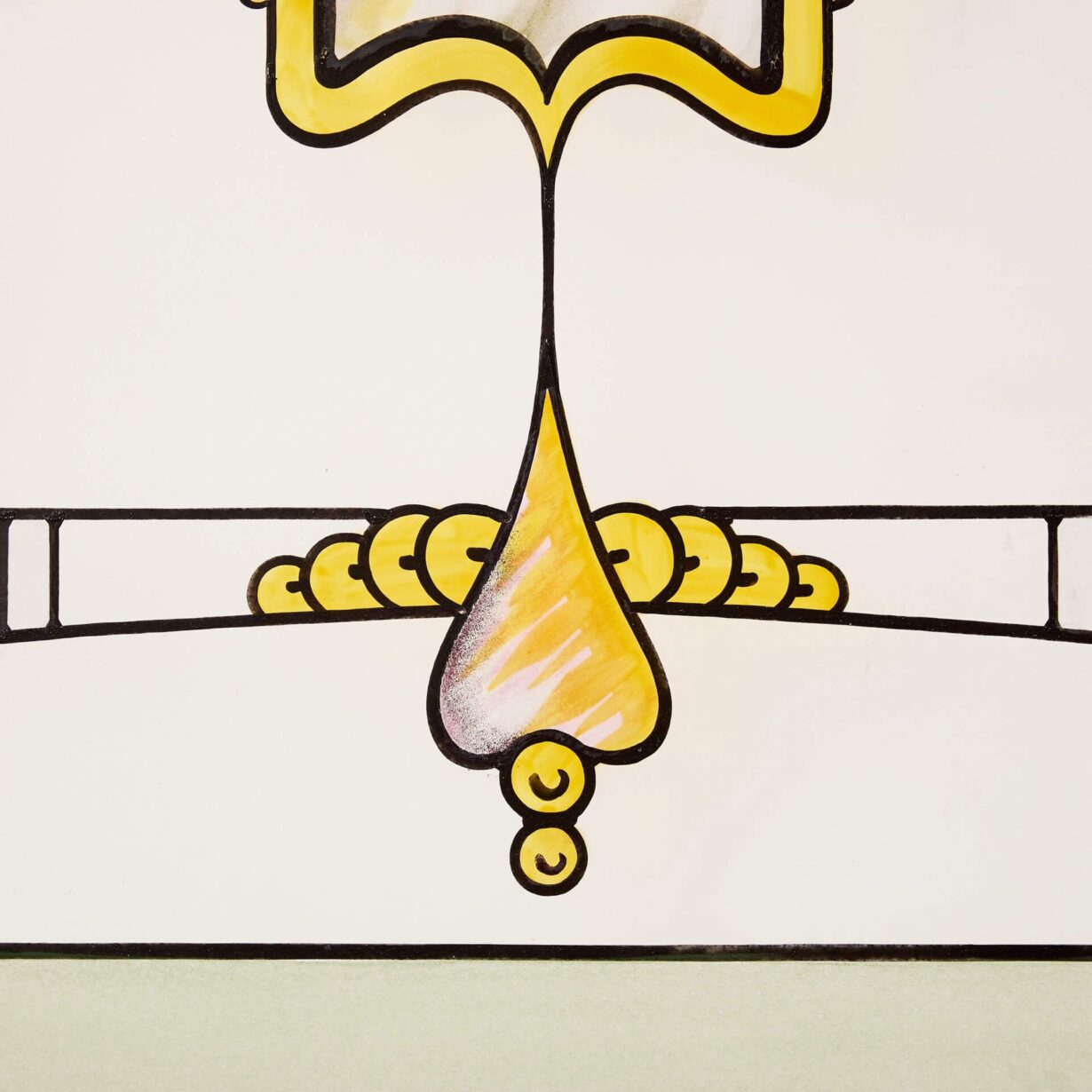 back to topAn early 20th century stained glass window, beautifully etched with Art Nouveau style details.