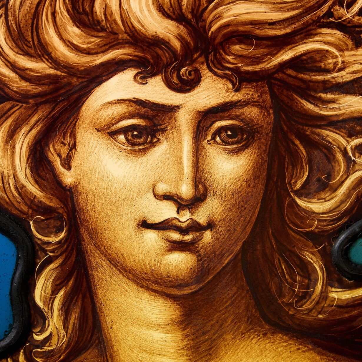 back to topA 20th century stained glass roundel depicting a maiden.