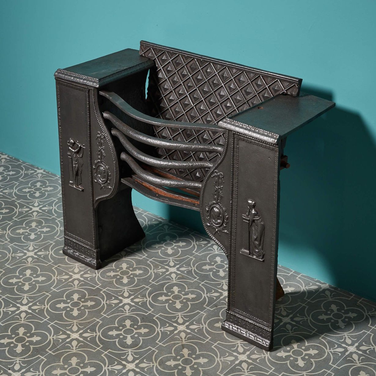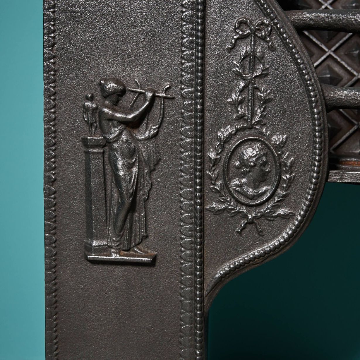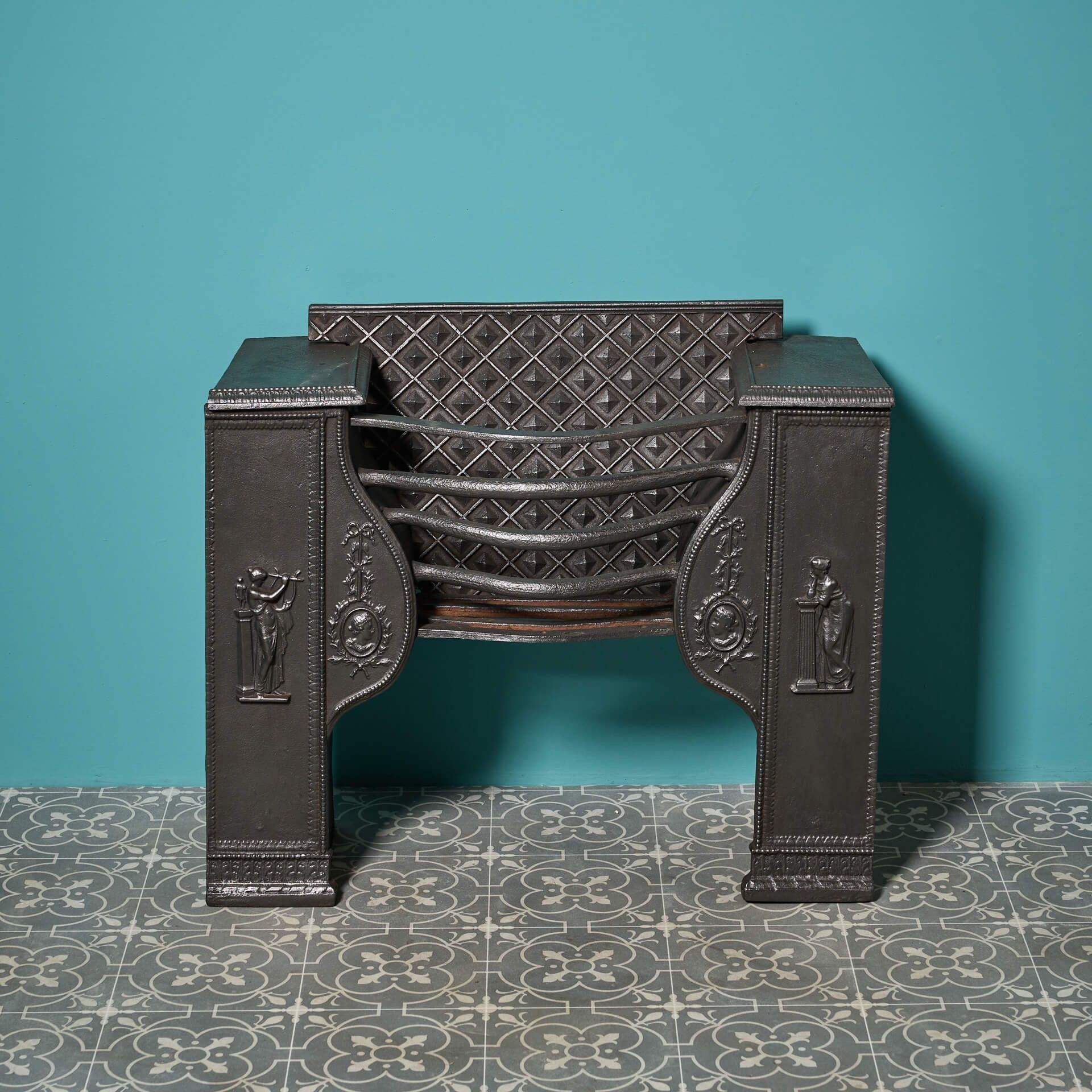 back to topAn original Georgian neoclassical style cast iron hob grate, cast with classical figures. Dating from the late 18th century, this antique hob grate is a heritage feature for any period home, adding function and interest to your fireplace.
