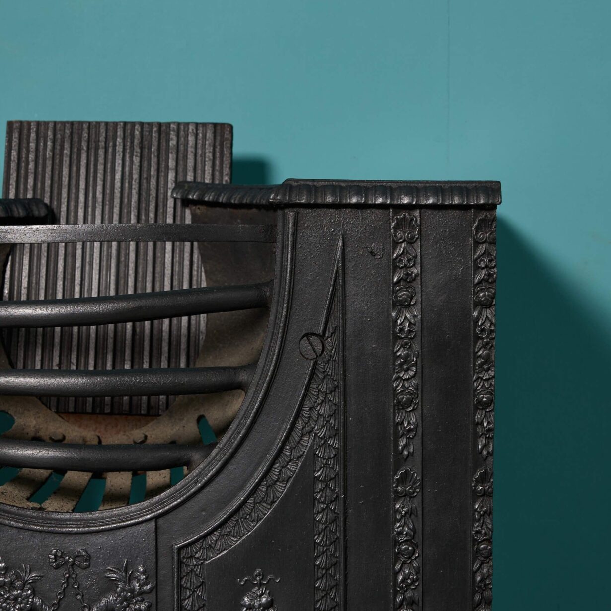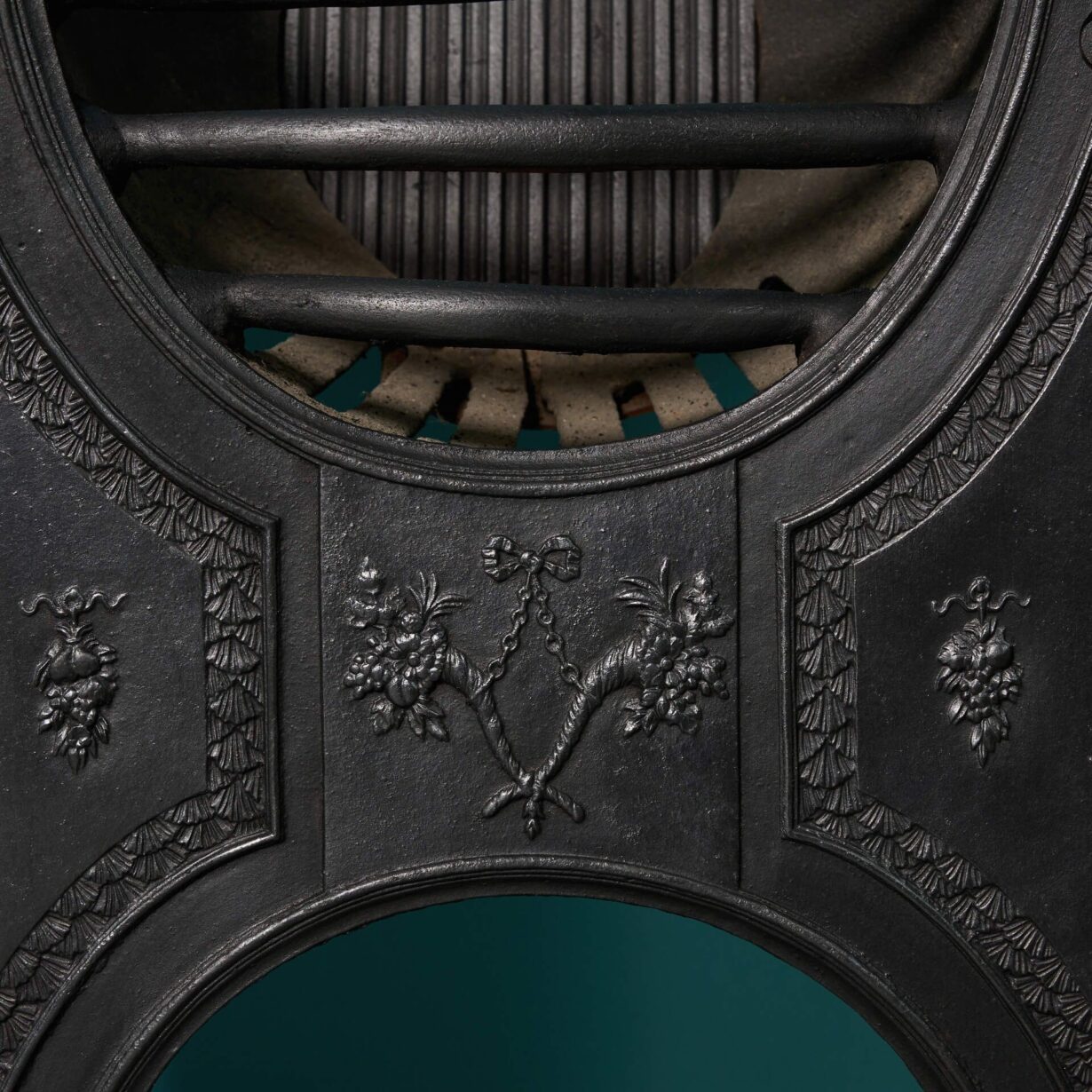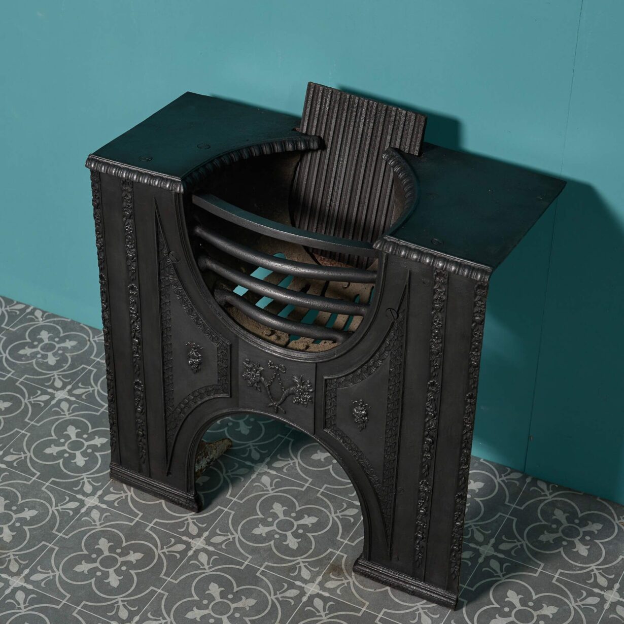 back to topA good quality George III hourglass hob grate, finished in black graphite polish. An original from the English Georgian period, this antique hob grate is intricately cast, featuring floral embellishments throughout, looking beautiful alongside a fireplace of the same era.