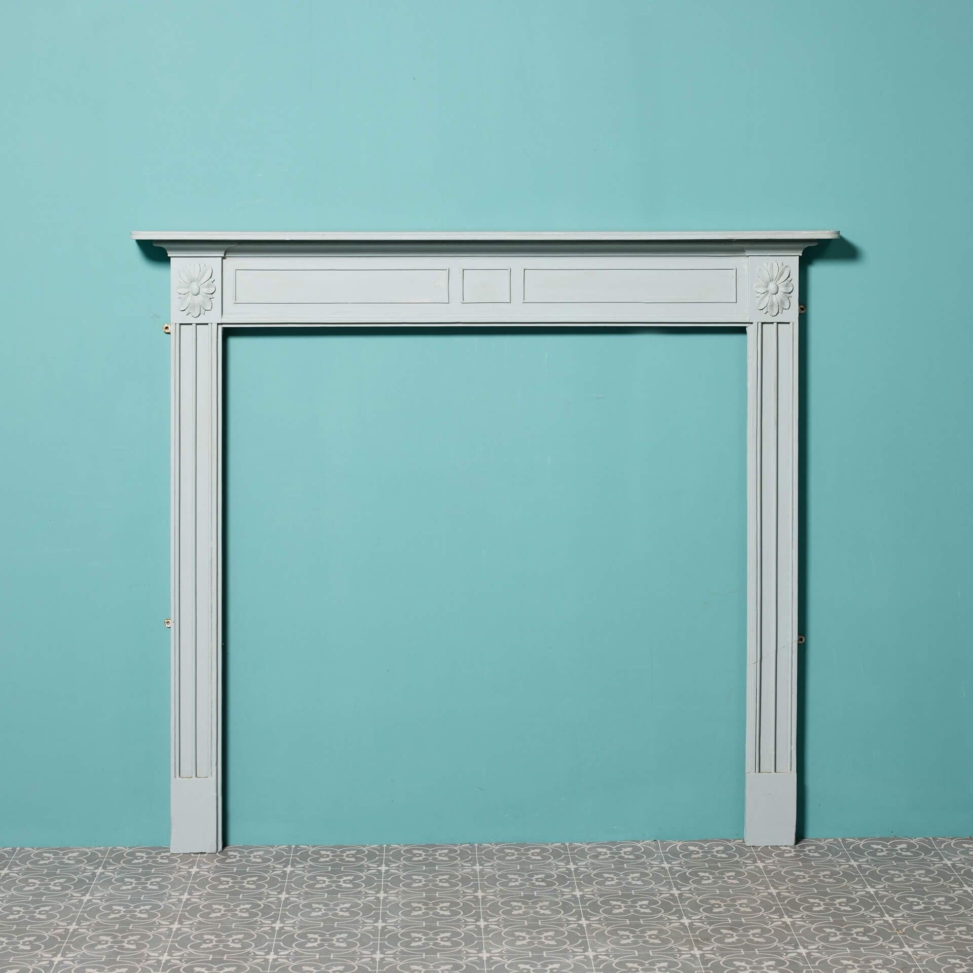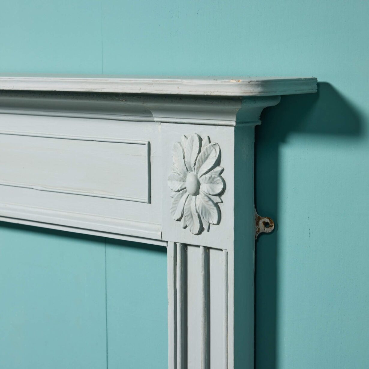 back to topAn English Georgian style fire surround constructed from pine, finished in a duck egg blue paint.