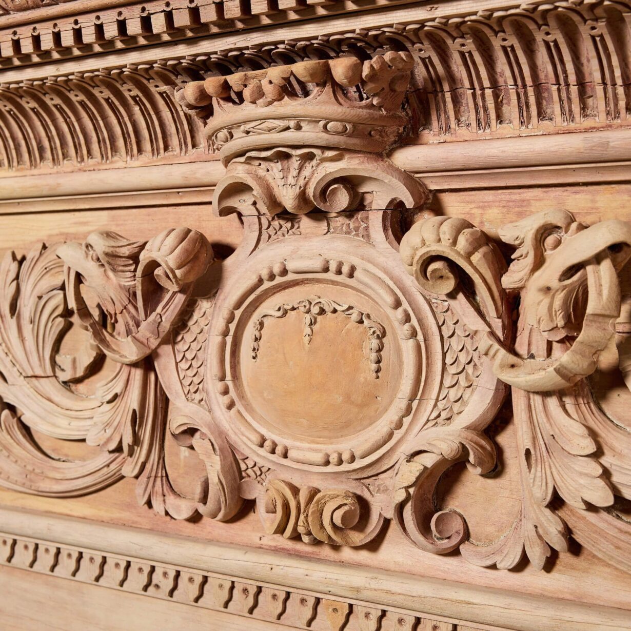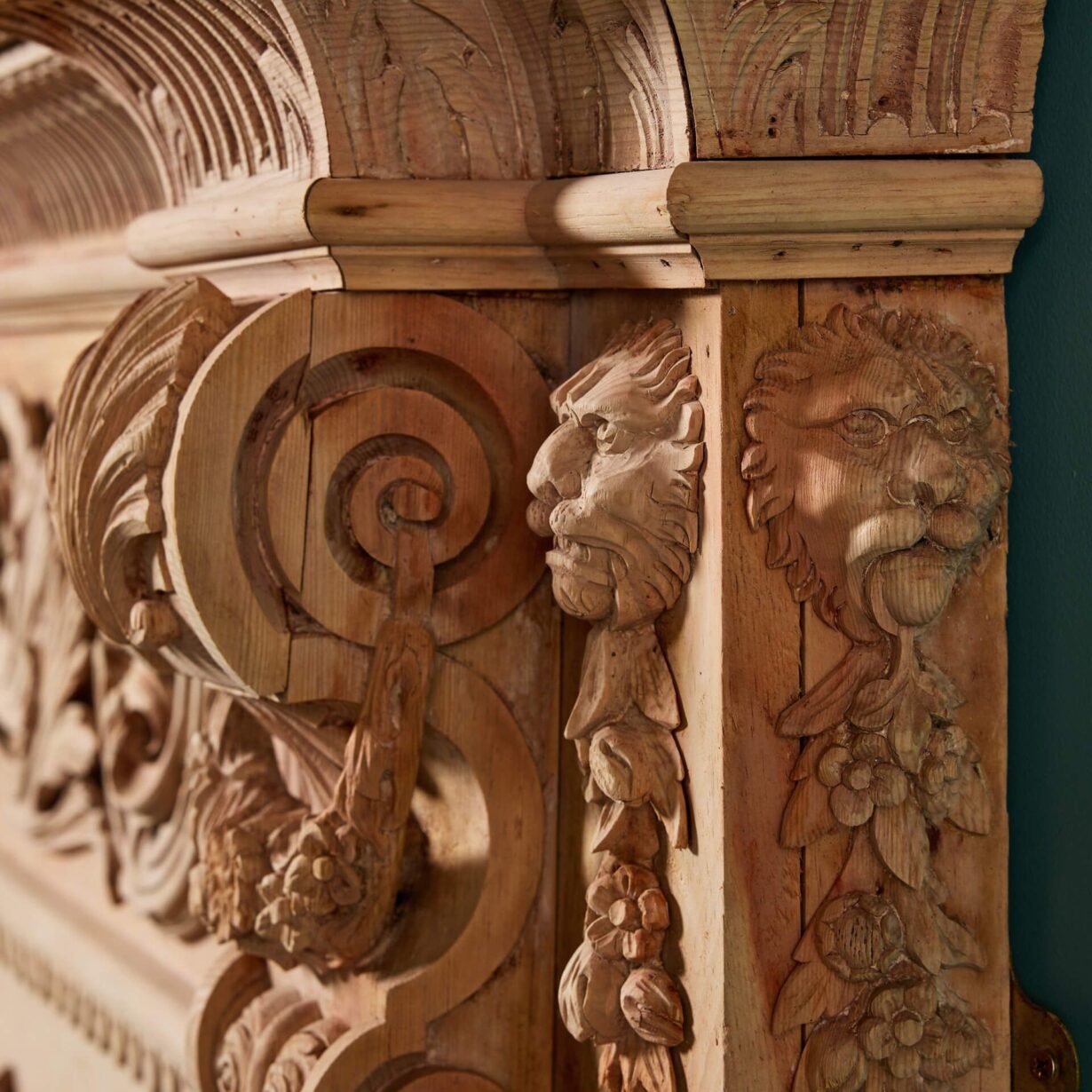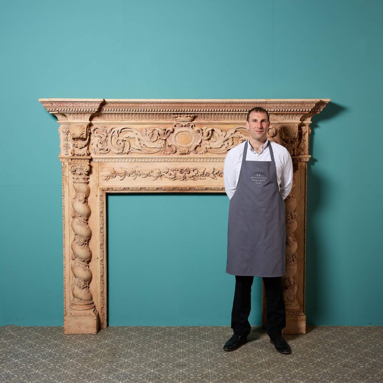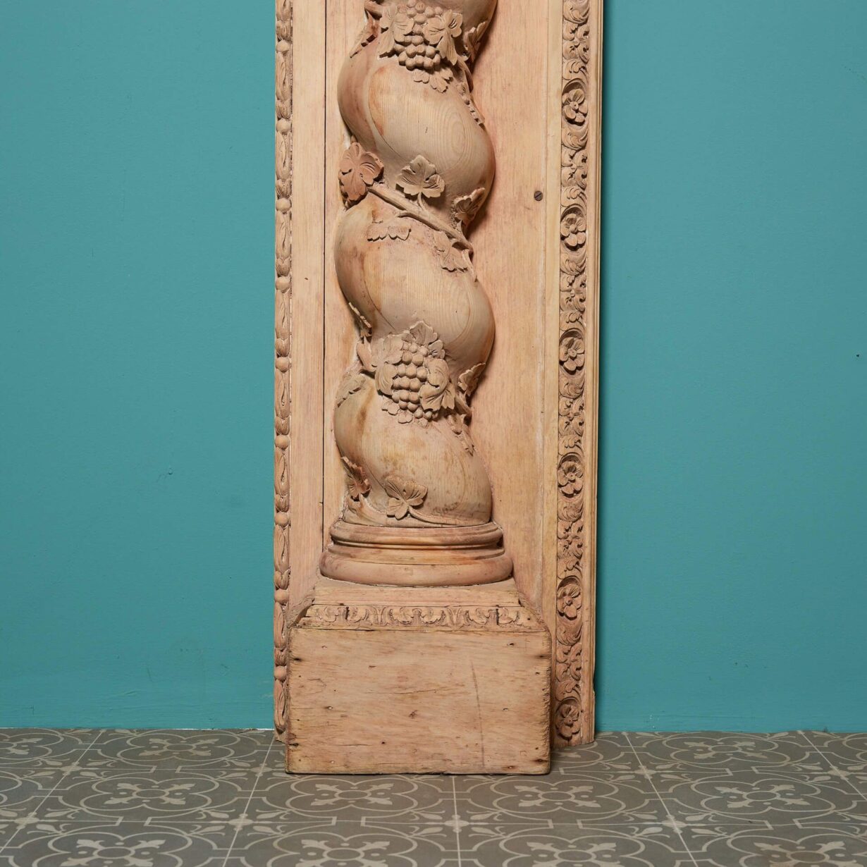 For a final touch of grandeur, the jambs are cleverly carved into the form of twisting columns with vine and berry decoration.