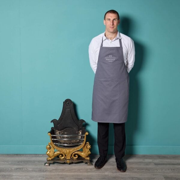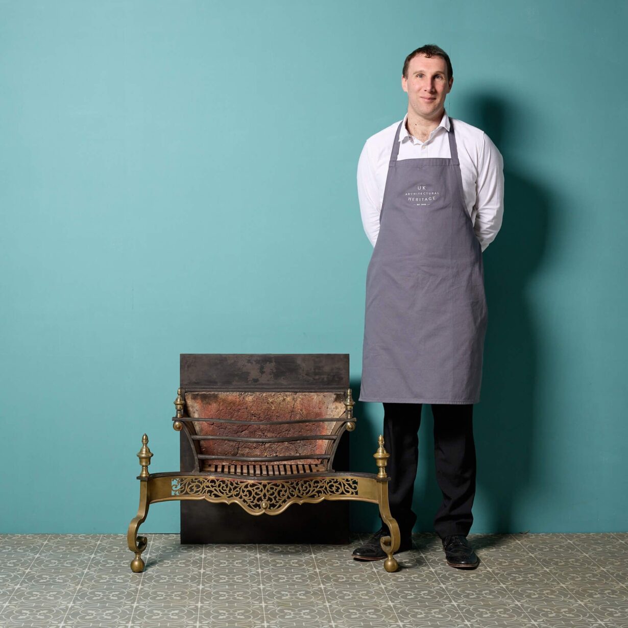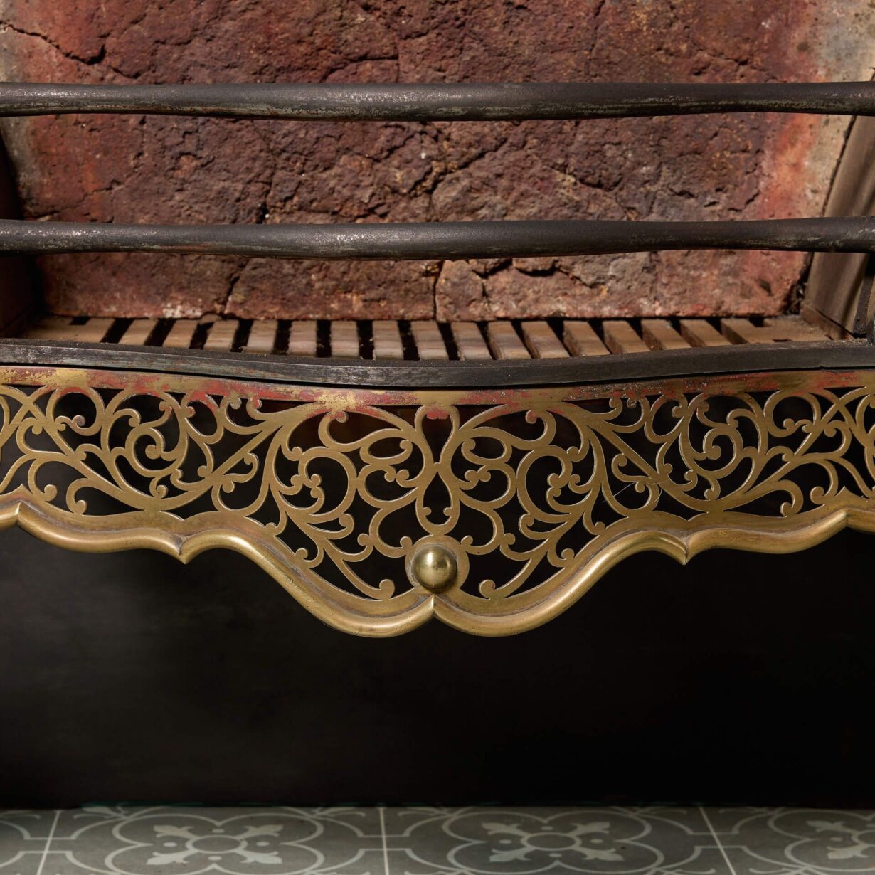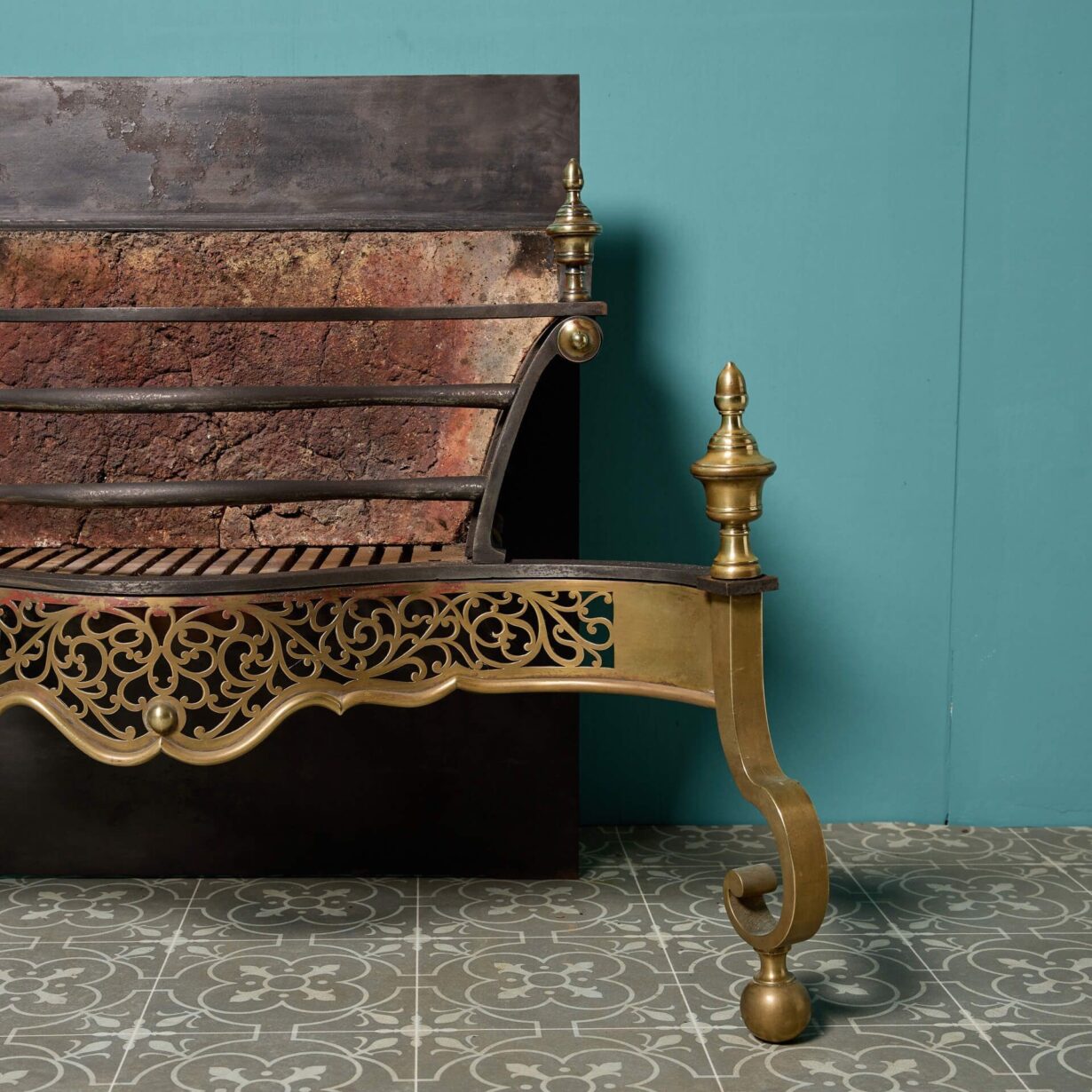 back to topAn impressive large George III style iron and brass fire grate. This late Victorian steel and engraved brass Georgian style fire grate would make a stunning feature for a period townhouse or country home.