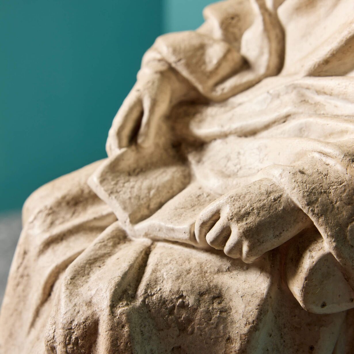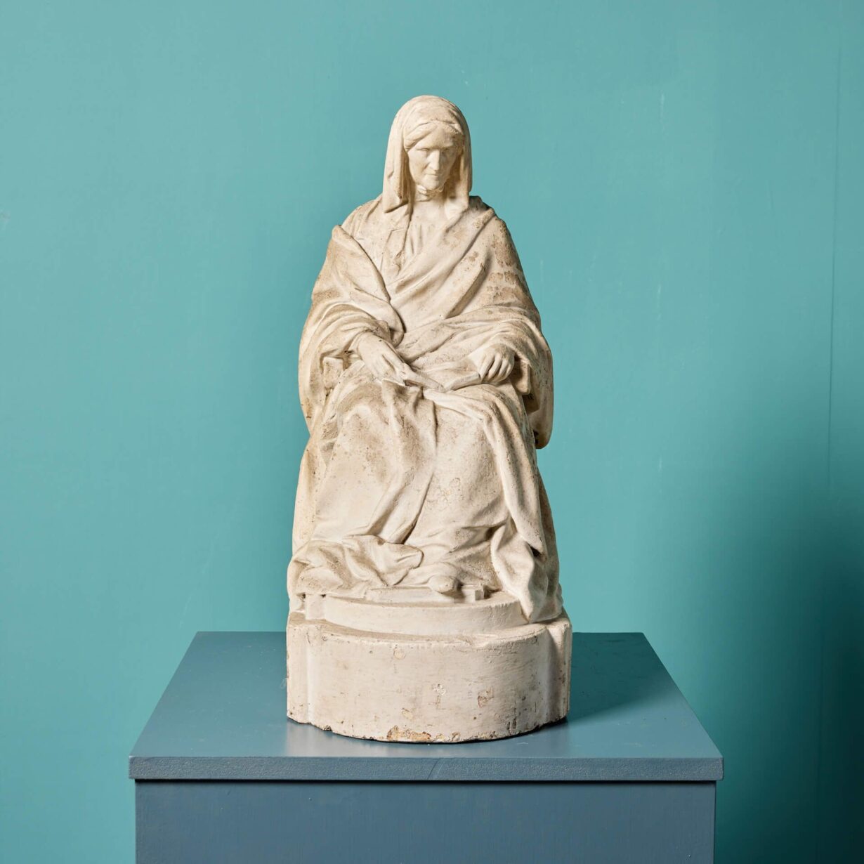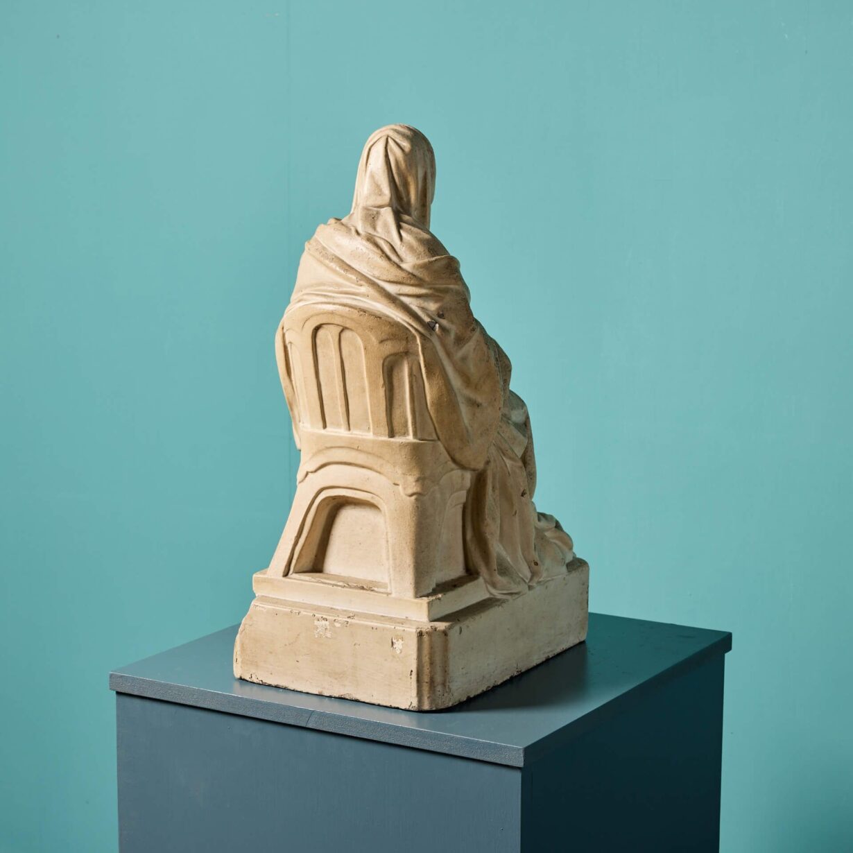 back to topAn antique plaster maquette of a seated lady holding a book on her lap. From the Studio of Ralph & Rodger Hedley (1848-1913 & 1879-1970). The woman is hooded and swathed in drapery in a classical yet modest manner. A beautiful decorative piece for an interior setting. We are also selling a maquette of a seated gentleman under stock no. 30390 which could be used alongside this one as an ornamental pair.