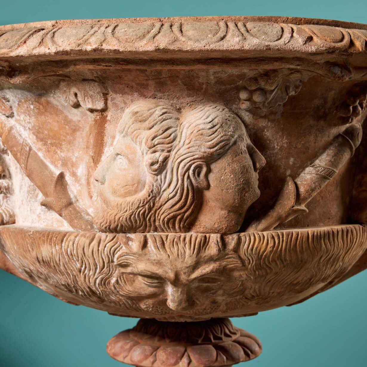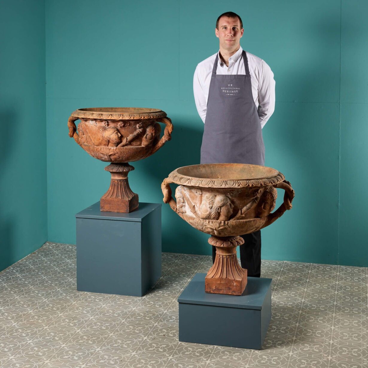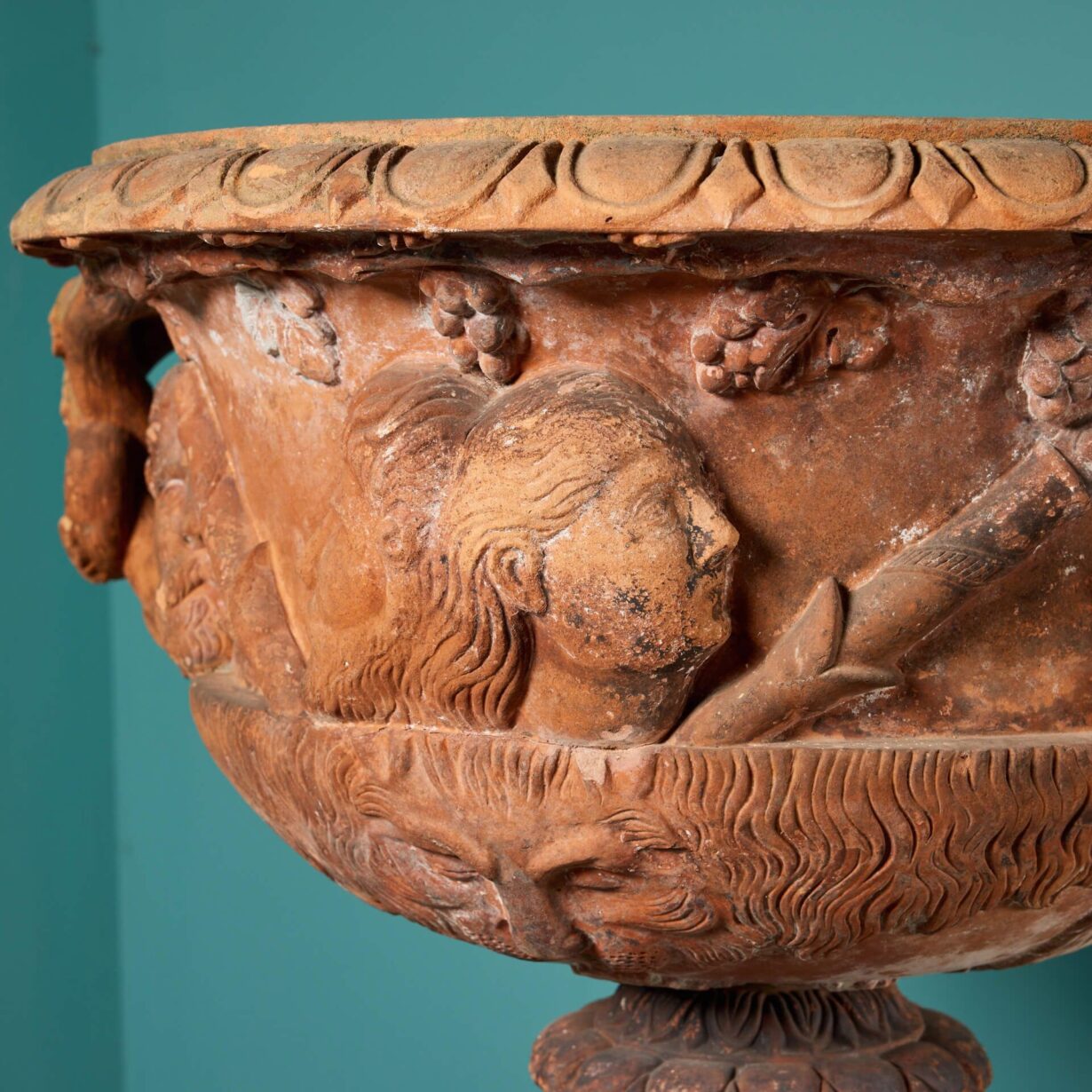 The original Warwick Vase, often closely associated with the Albani Vase, on which these smaller terracotta versions are based is thought to originate from as early as the 2nd century. However, its known history dates back the 1770s.