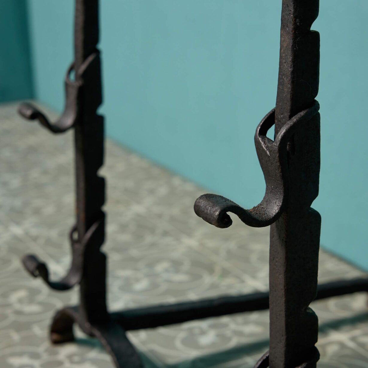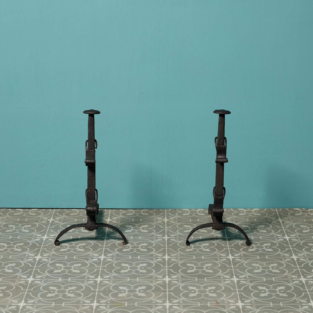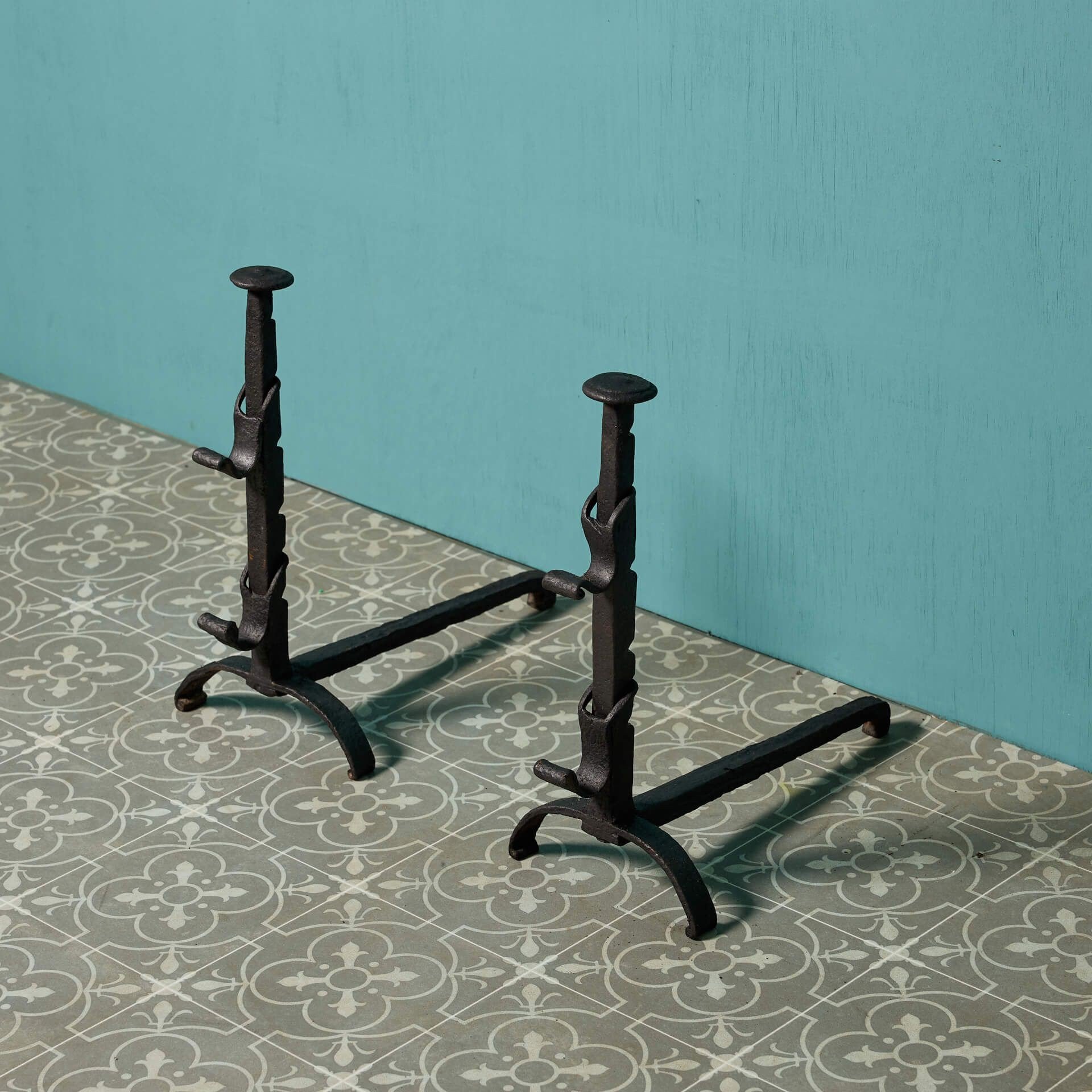 back to topA pair of antique late 18th century wrought iron fire dogs. These wrought iron firedogs are perfect for adding visual interest to any period style fireplace due to their simple yet handsome.