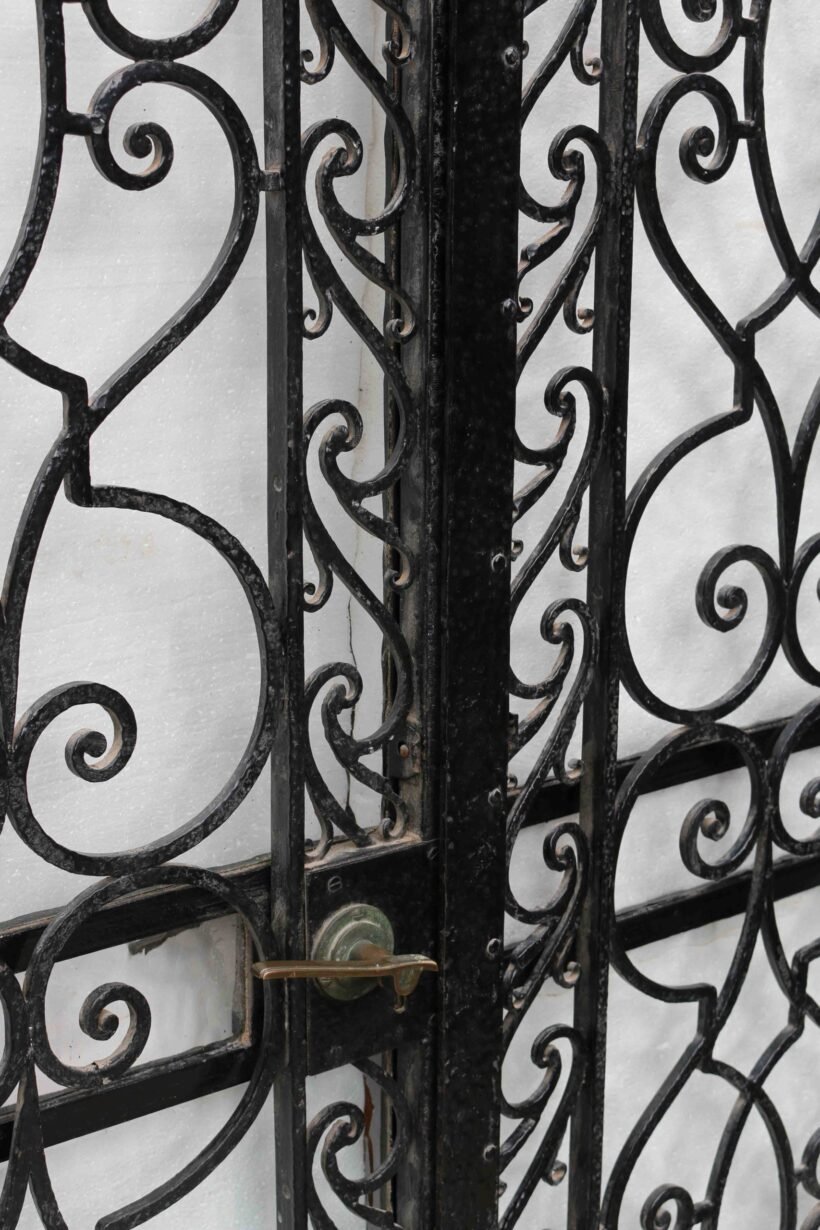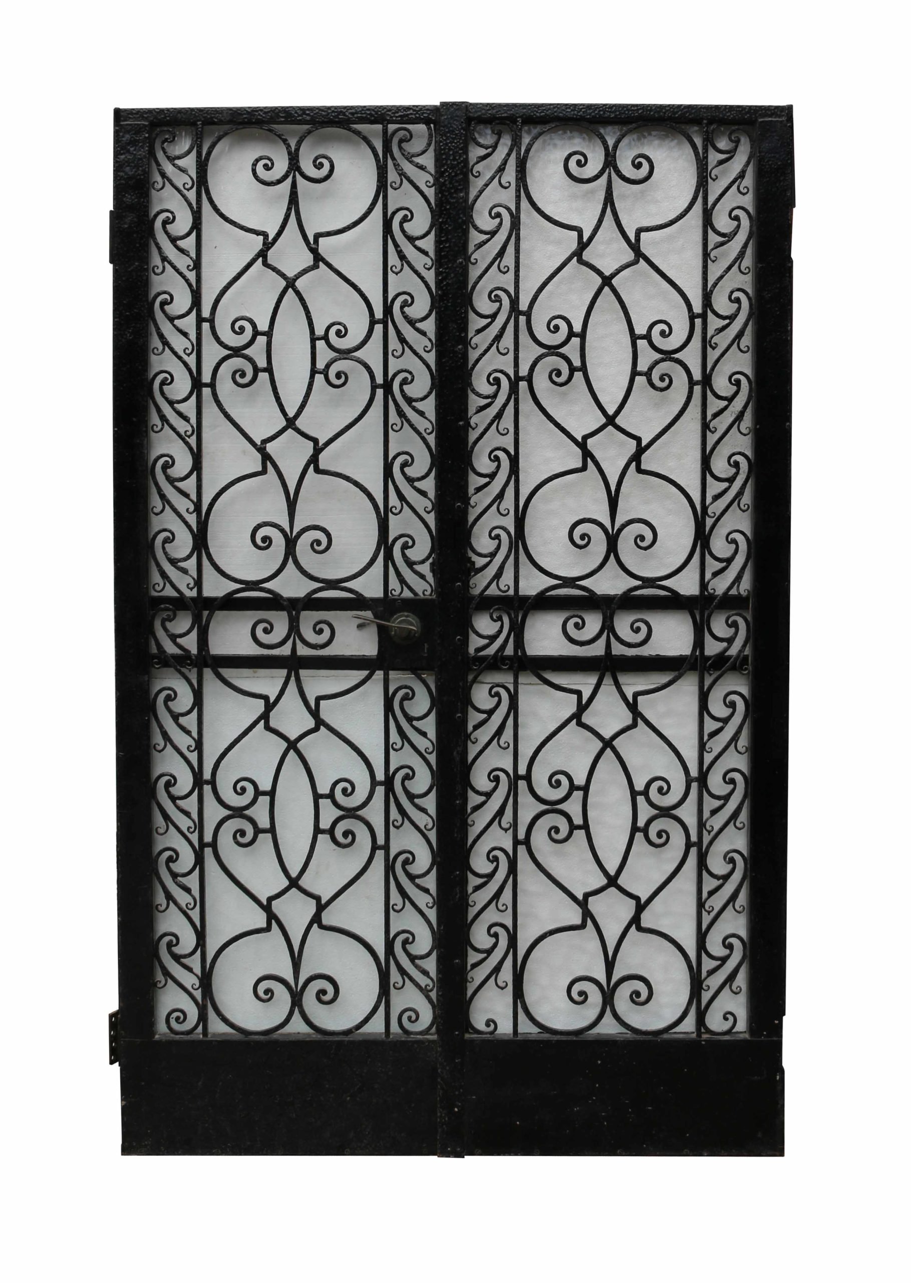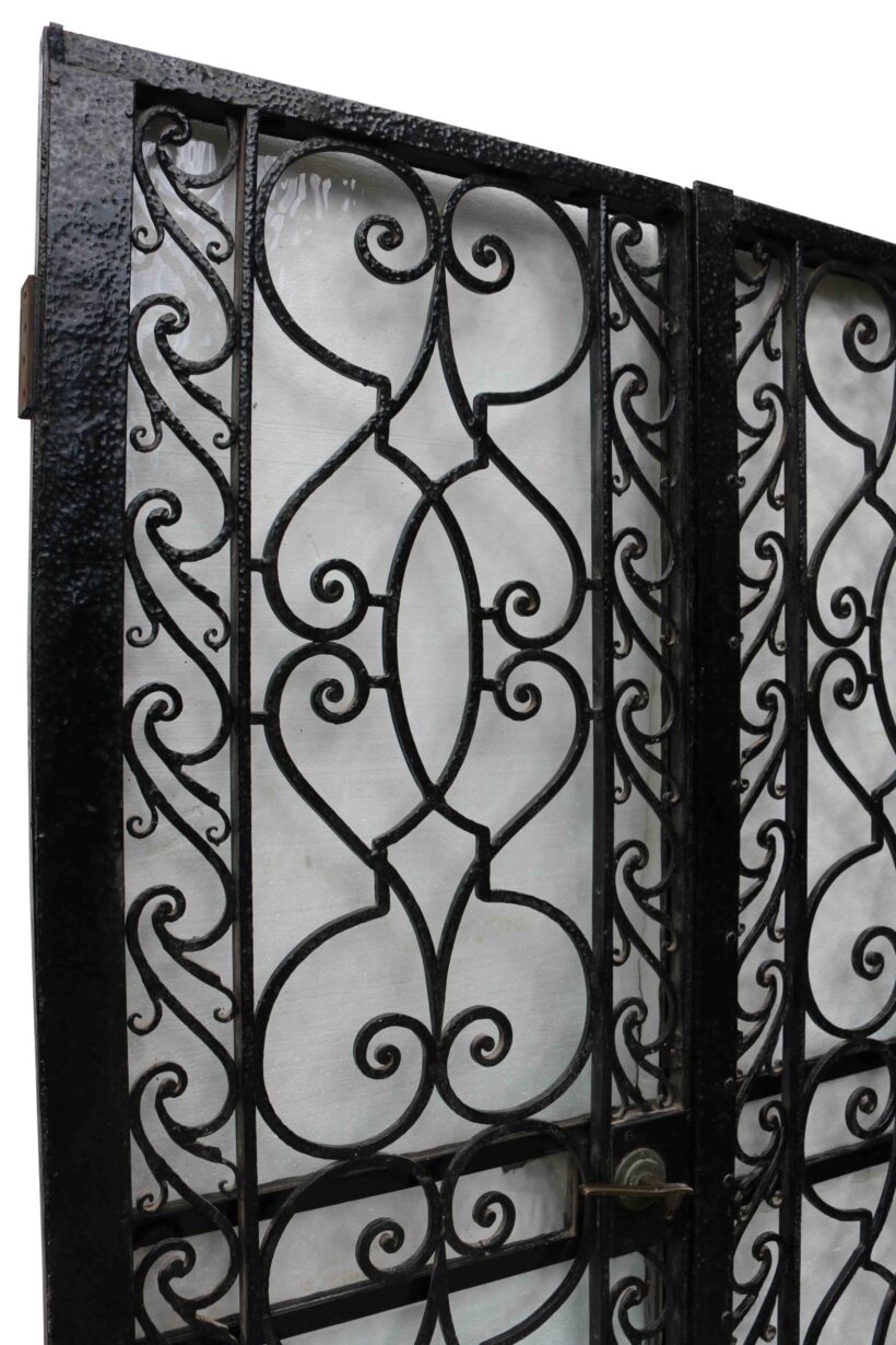 These gates were salvaged from a property in central London. The reverse side houses textured glass panels which can be opened for cleaning. If not required, these panels can be removed.