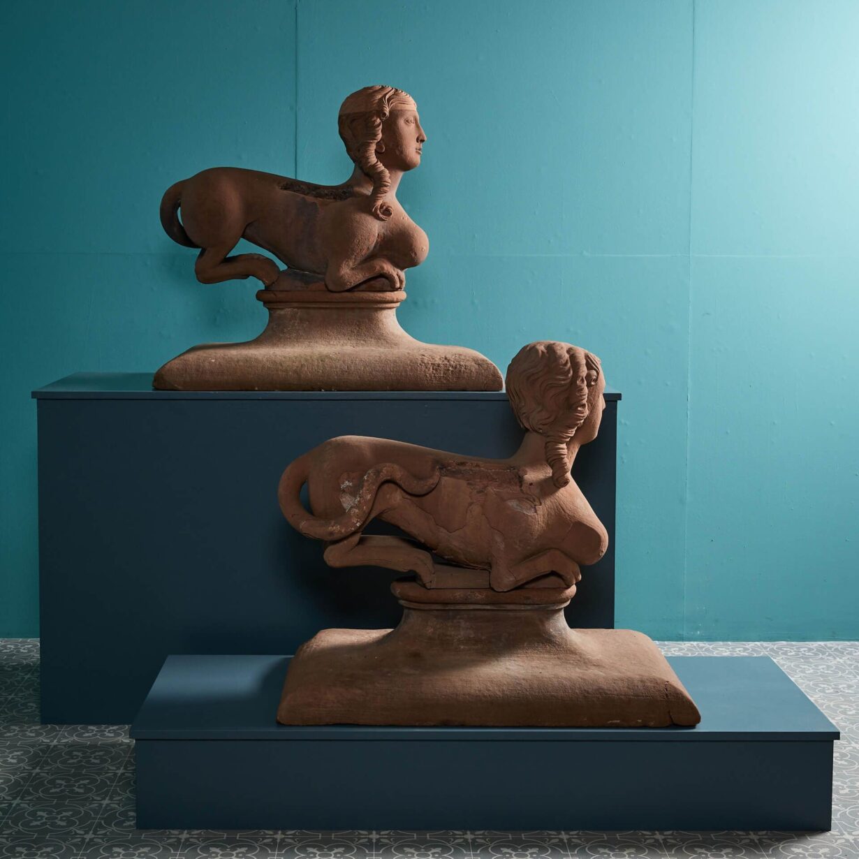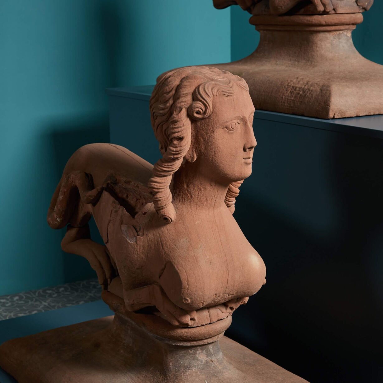back to topA unique opportunity to purchase a pair of 18th century Georgian sandstone sphinx statues or gate pier ornaments, originally from High Head Castle, Cumbria.