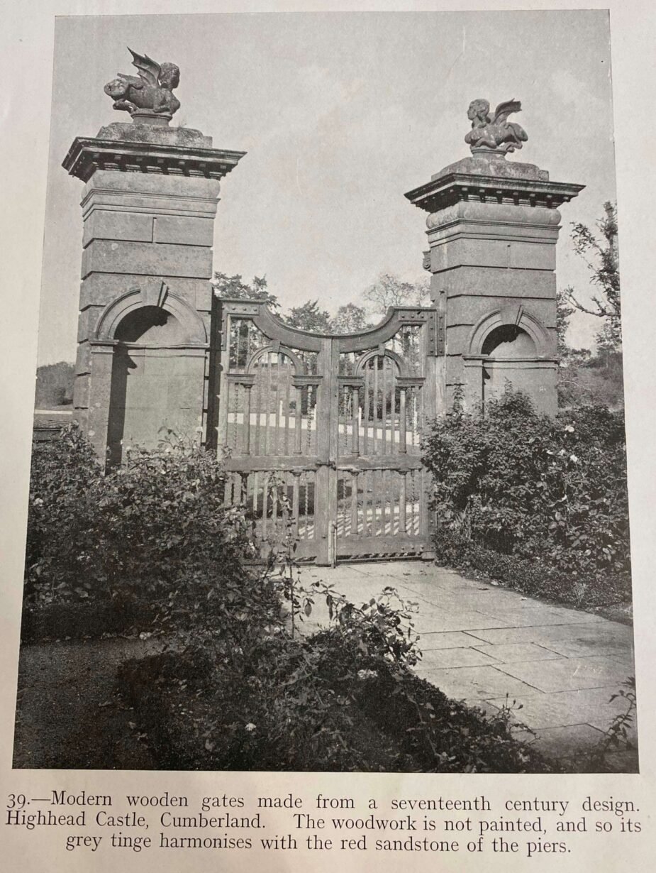 A replacement pair can be seen in position on the gate piers to the front elevation of the castle.