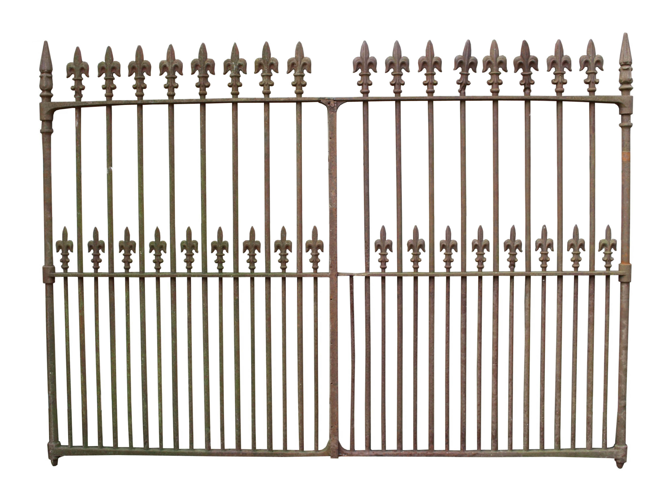 back to topA pair of wrought iron entrance gates, with cast iron finials. Salvaged from a house in Tonbridge Wells.