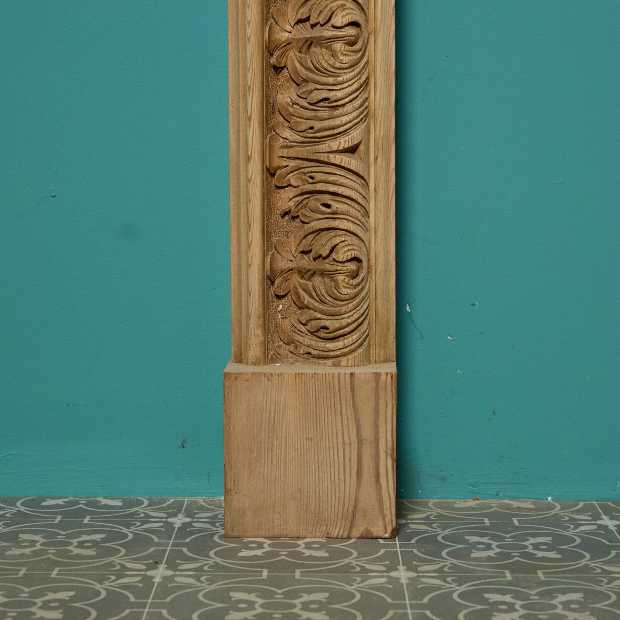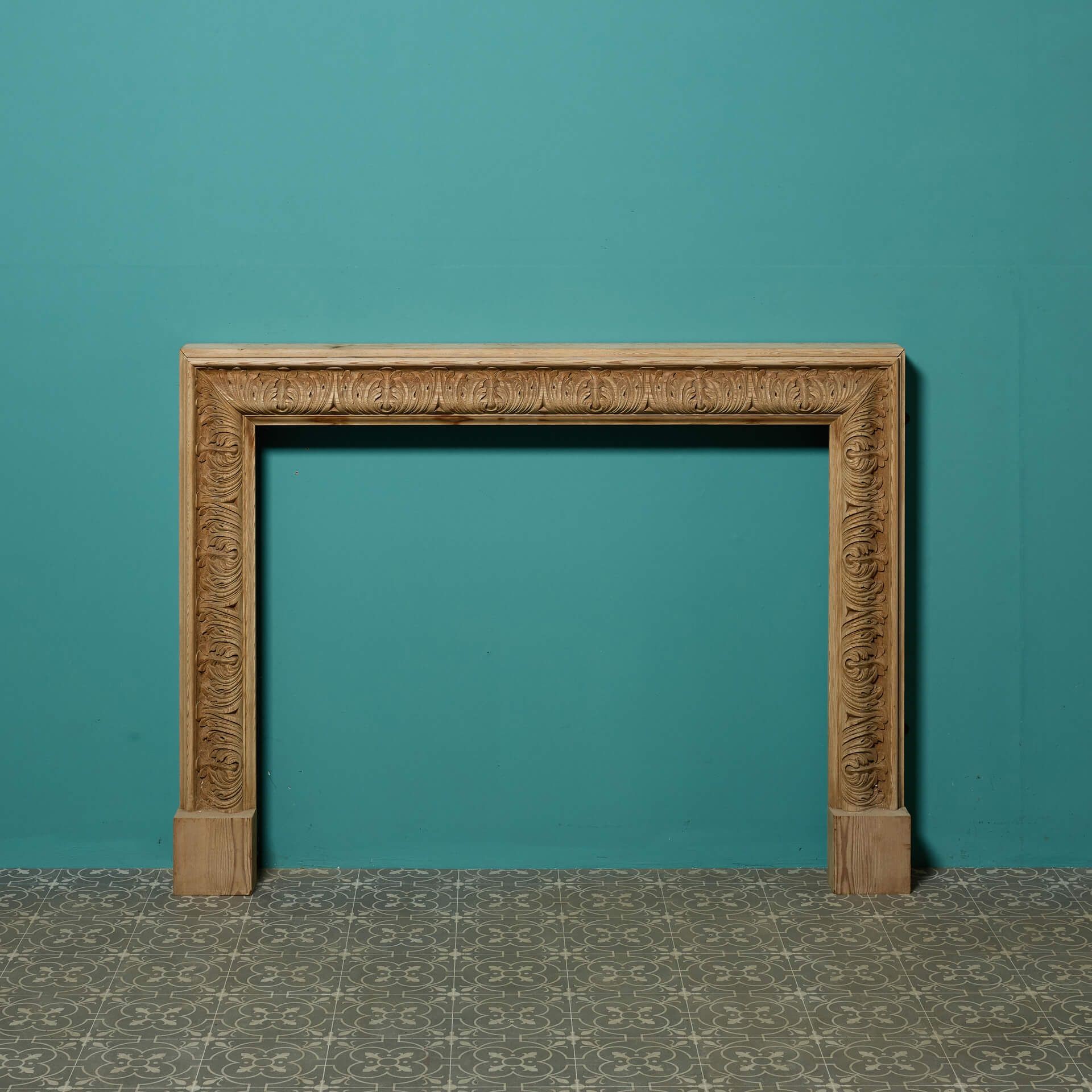 back to topA deeply carved bolection style fireplace, reclaimed from a house in South London. This beautiful fireplace pairs the simplicity and clean lines of bolection styling with classical acanthus carving, creating an antique fireplace suited to both traditional and modern spaces alike. The pine is stripped allowing for bespoke finishing in wax, stain or paint to suit your interior vision.