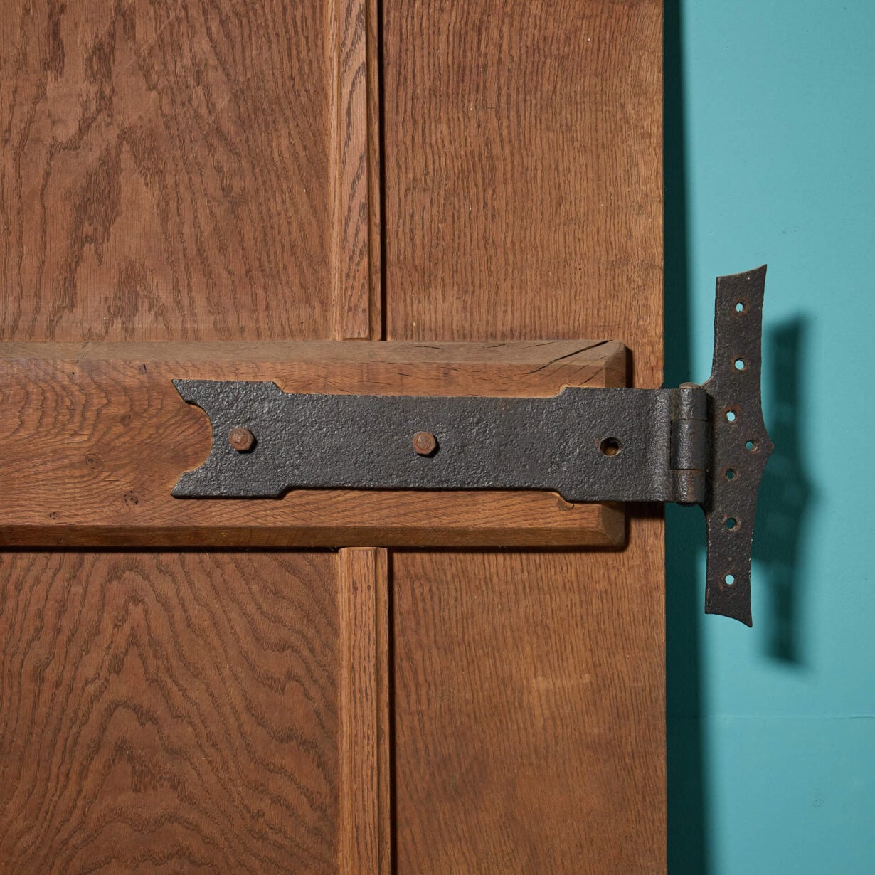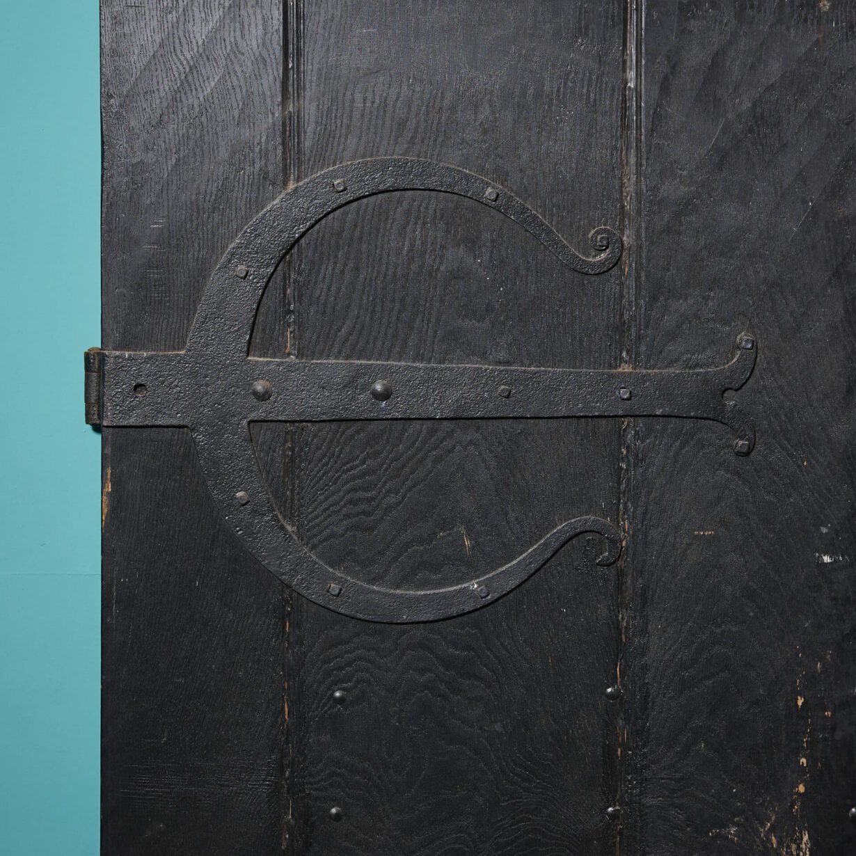 back to topThis fascinating English Gothic style oak exterior door was reclaimed from a farmhouse in Suffolk. This heavy and substantial door is made from oak and utilises striking 18th century wrought iron hinges. The internal face is fitted with an oak sliding bolt.